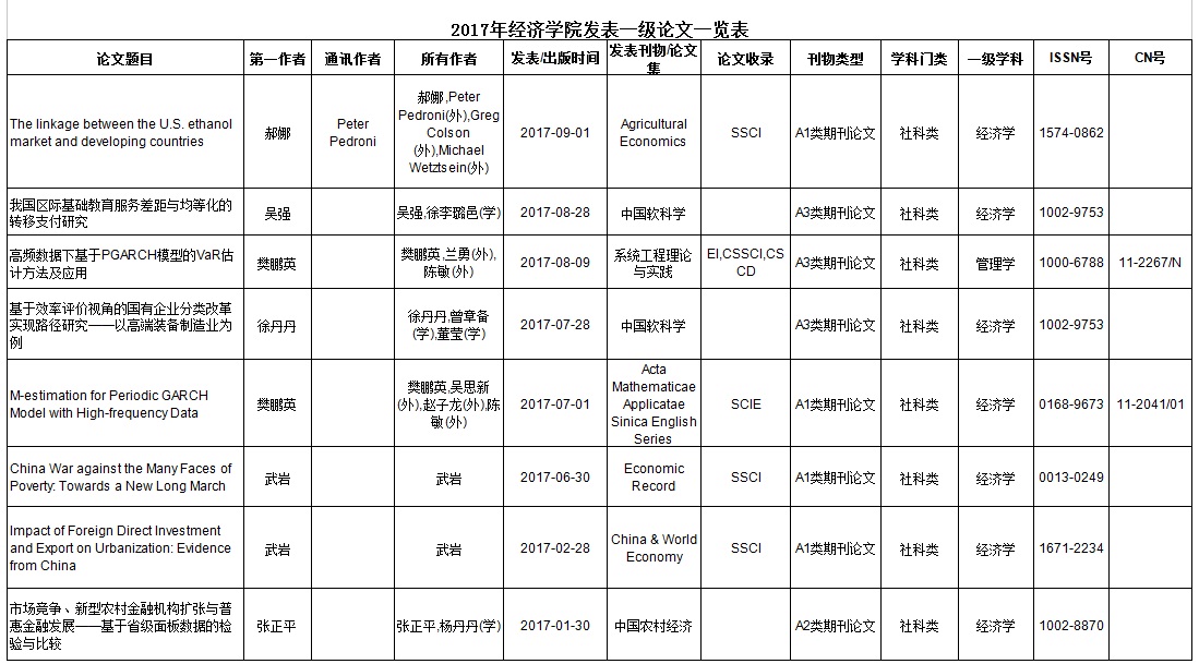 2017年yl23455永利发表一级论文一览表
