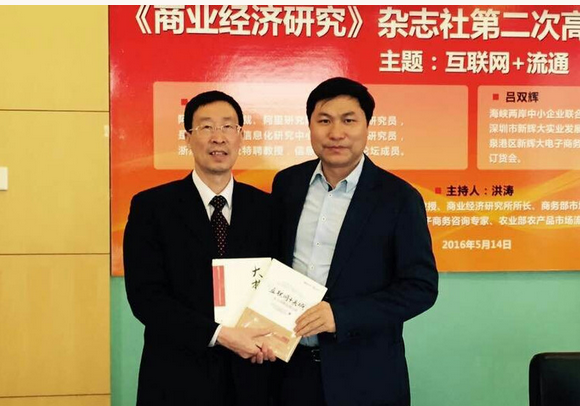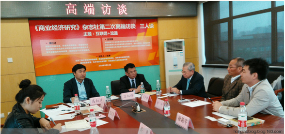 2016514,《商业经济研究》杂志社第二次高端访谈在yl23455永利官网综合楼801举行。参加高端访谈的嘉宾有:阿里巴巴副总裁、阿里研究院经理、高级研究员高红冰;海峡两岸中小企业联合促进会(简称海促会)主席,中国农产品电商联盟执行主席,深圳市新辉大实业发展有限公司董事长吕双辉;原农委会副主任委员、财团法人中央畜产会董事长、台湾大学农经系所兼任教授黄钦荣等。访谈由yl23455永利官网商业经济研究所所长、贸易系洪涛教授主持。
