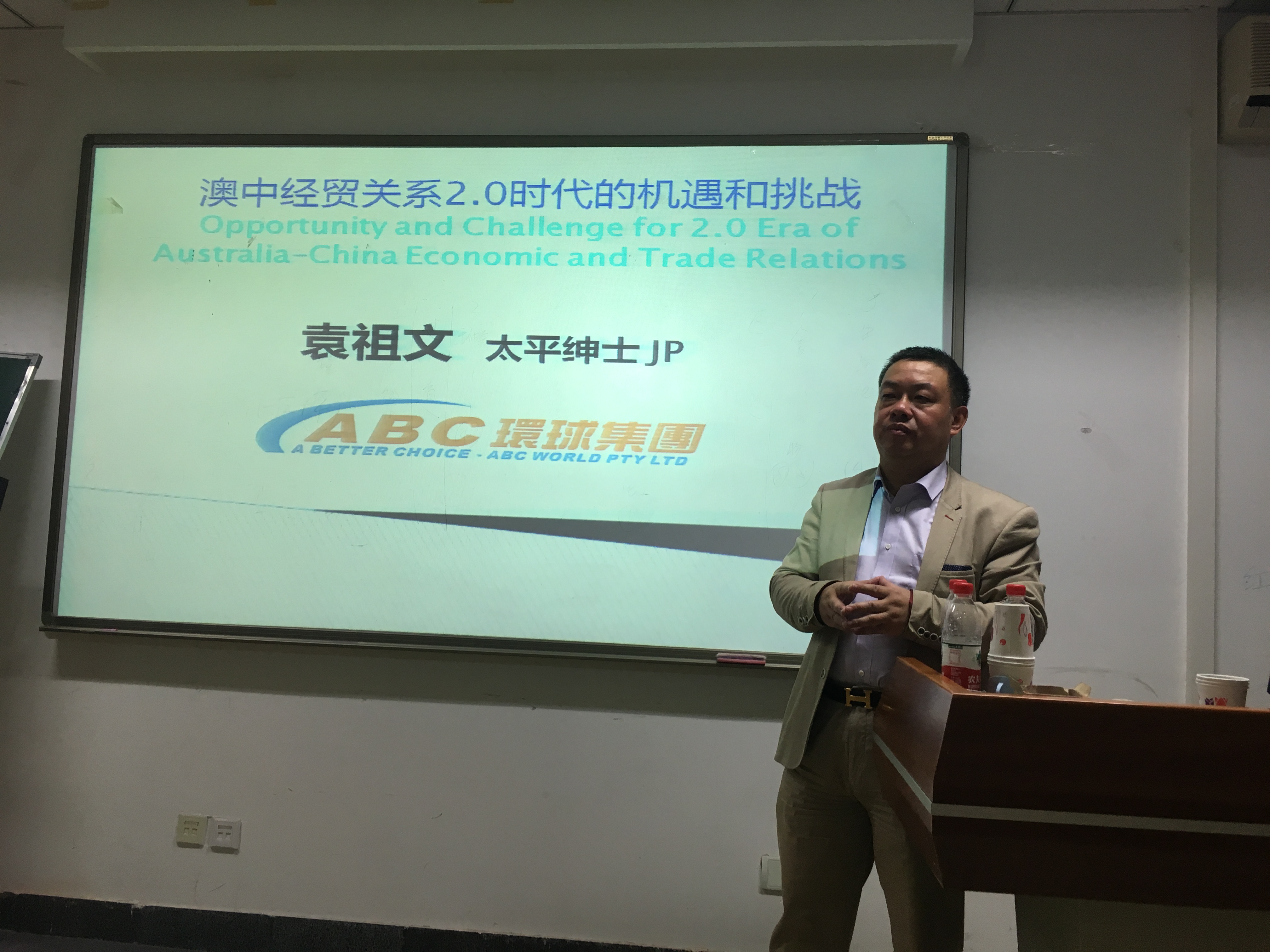国贸教研室举办澳大利亚袁祖文太平绅士《澳中经贸关系2.0时代的机遇和挑战》讲座