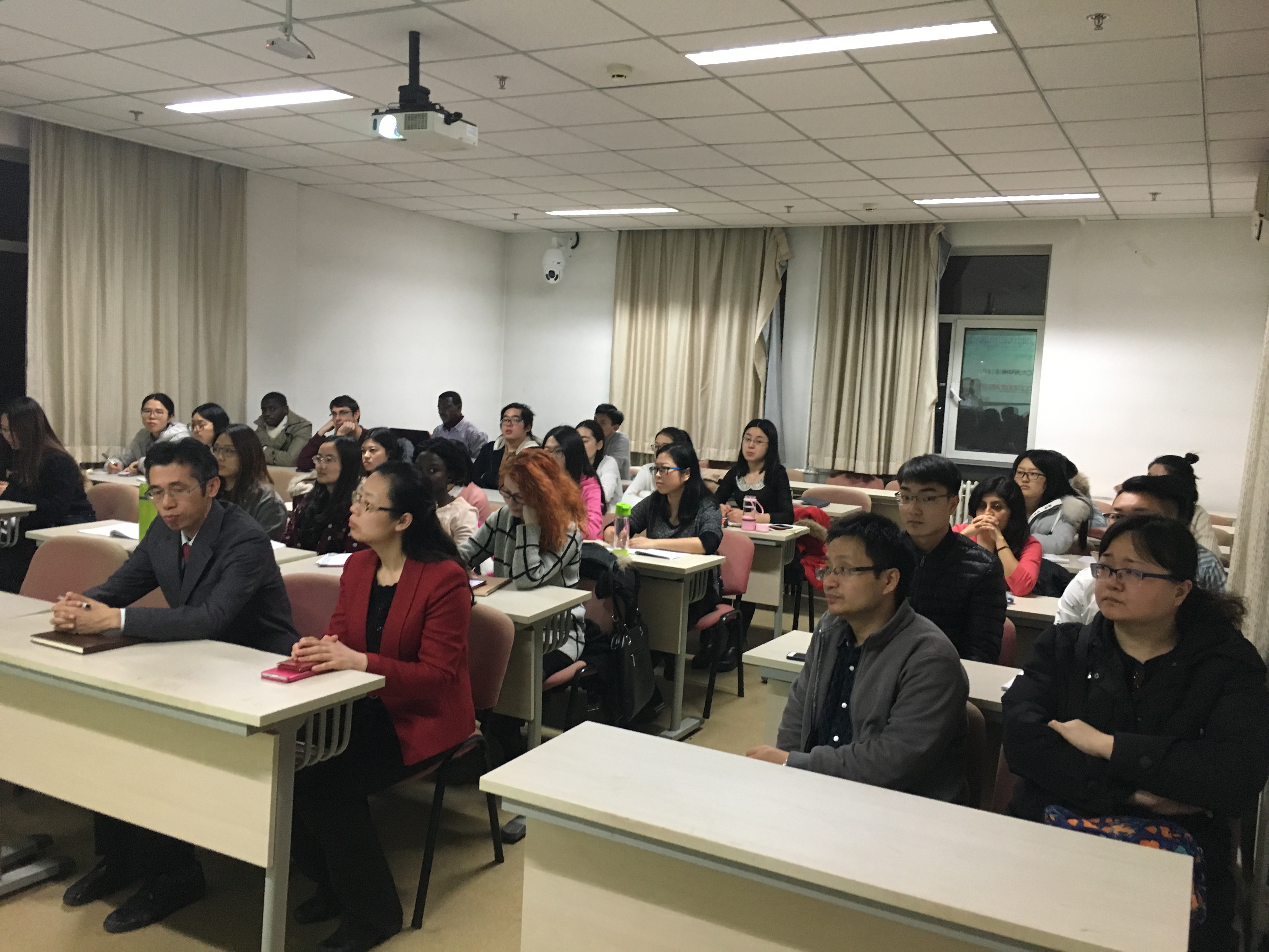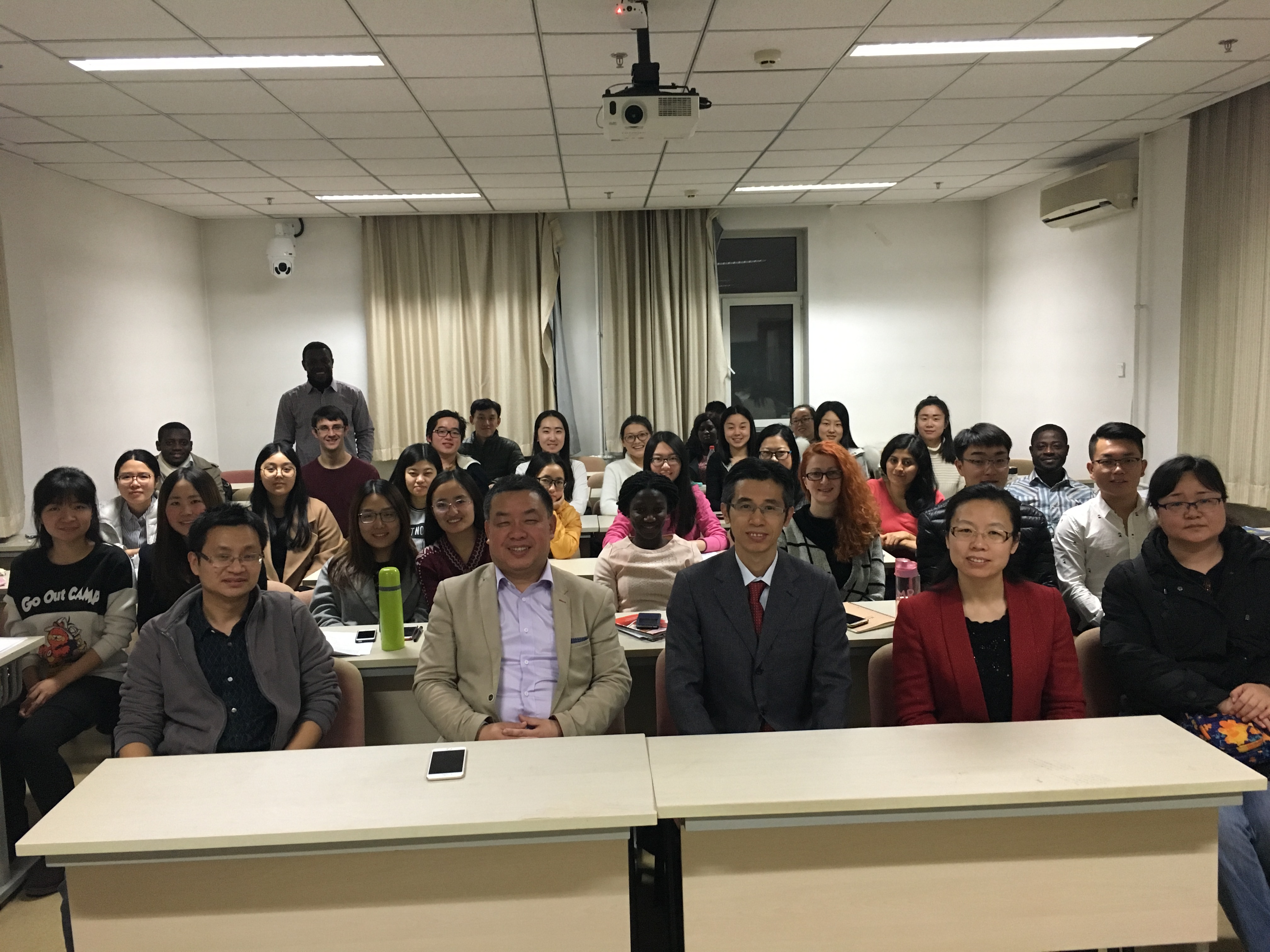 20161219日,恰值《中澳自由贸易协定》正式生效并实施一周年之际,国贸教研室特别邀请到澳大利亚ABC环球集团董事长袁祖文太平绅士来校,为国际商务(含外国职工)、国际贸易学等专业的硕士研究生做《澳中经贸关系2.0时代的机遇和挑战》英文讲座。讲座由贸易系副主任、国贸教研室主任朱振荣主持,国际交流与合作处处长刘颖亲临现场并发表了欢迎致辞,自始至终聆听了讲座。yl23455永利主管外事工作的副经理张伟、主管研究生工作的副经理罗玉波、国贸教研室教师王茜以及30多名硕士研究生(其中外国职工9人)全程参加了讲座,共同探究2.0时代的澳中经贸关系。