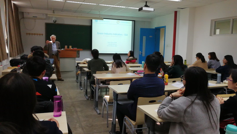 Luken Ralph的演讲题目为“我们是否有数据衡量联合国产业进步可持续发展目标”,演讲过程中Ralph教授介绍了联合国产业进步的9个可持续发展目标,并集中对于中国和南非的能源消耗和CO2碳排放情况进行了分析,鼓励同学们积极使用数据,并且理性分析数据的可用性和真实性来支持研究工作。演讲的最后同学们和Ralph教授用英文就目前大家所关注的减排与节能问题进行了热烈的讨论,重点探讨了对中国数据的看法。Ralph教授充分肯定了同学们的提问,对同学们的积极思考,热烈的讨论态度提出了表扬。此次邀请外国专家来院进行学术交流,让教师和同学们加深了学术前沿的了解,对国际学术论文的书写,数据的获取有了更为直观的把握。