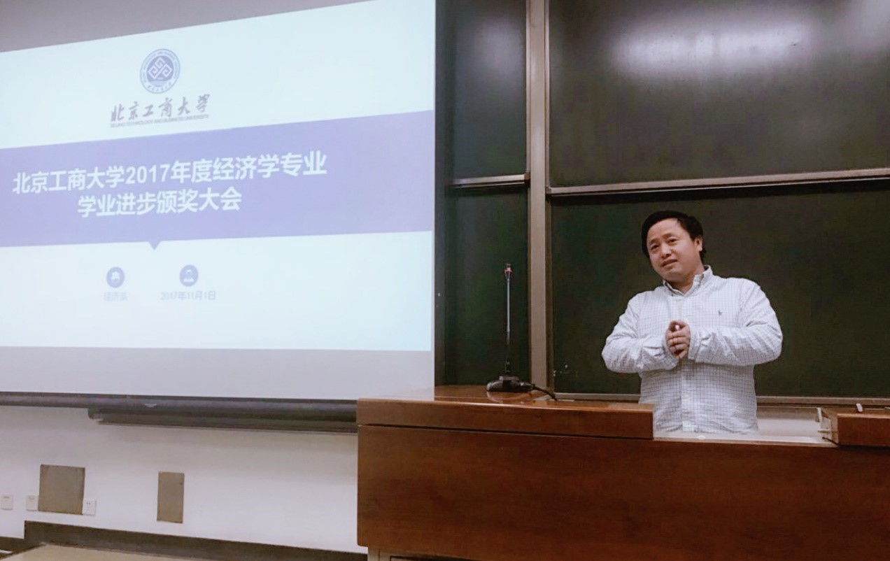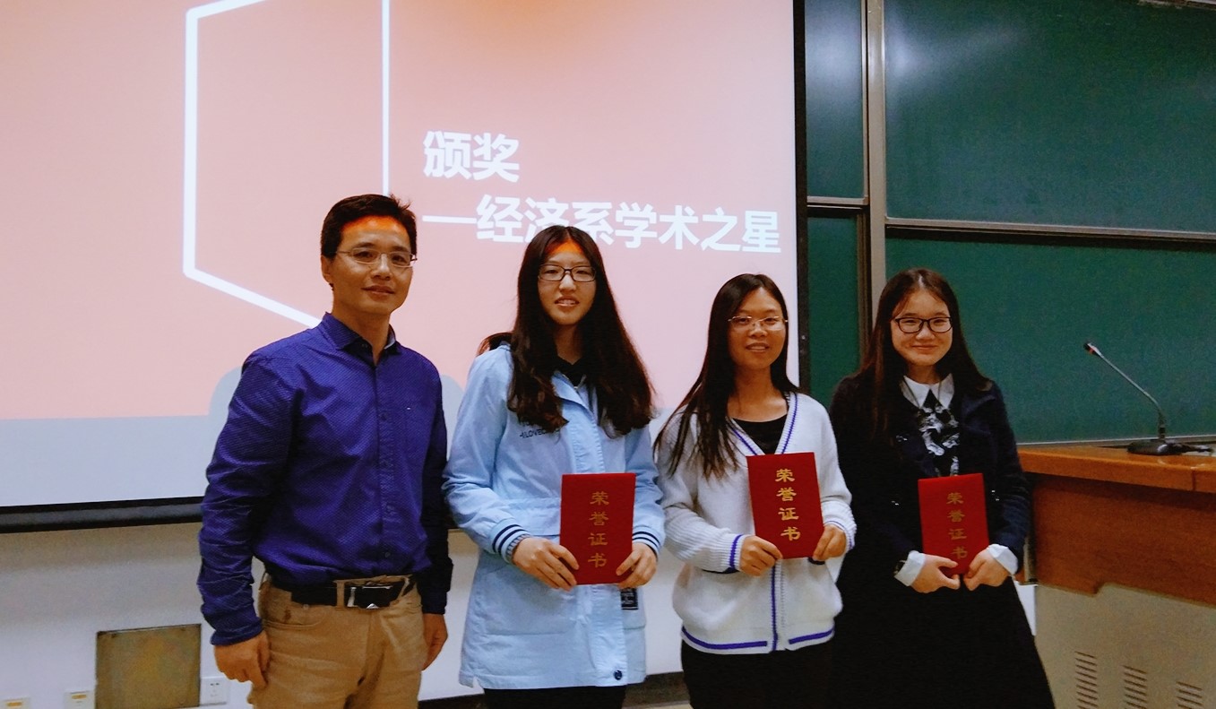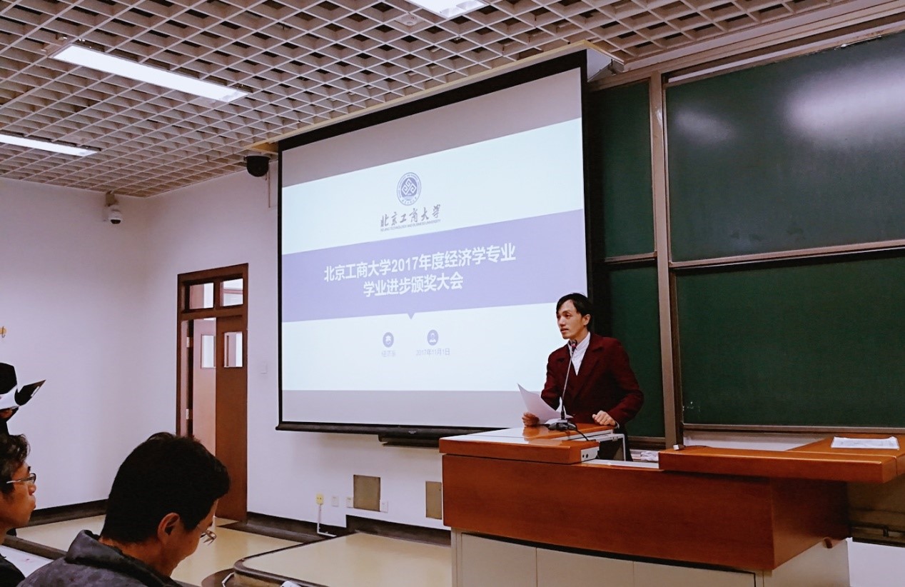 2017年11月1日,经济系在文二教学楼举办了首届经济学专业进步奖与学术类奖项颁奖大会。yl23455永利副经理张伟,经济系主任倪国华,经济系副主任熊文,经济15班主任余向华老师亲临会场。