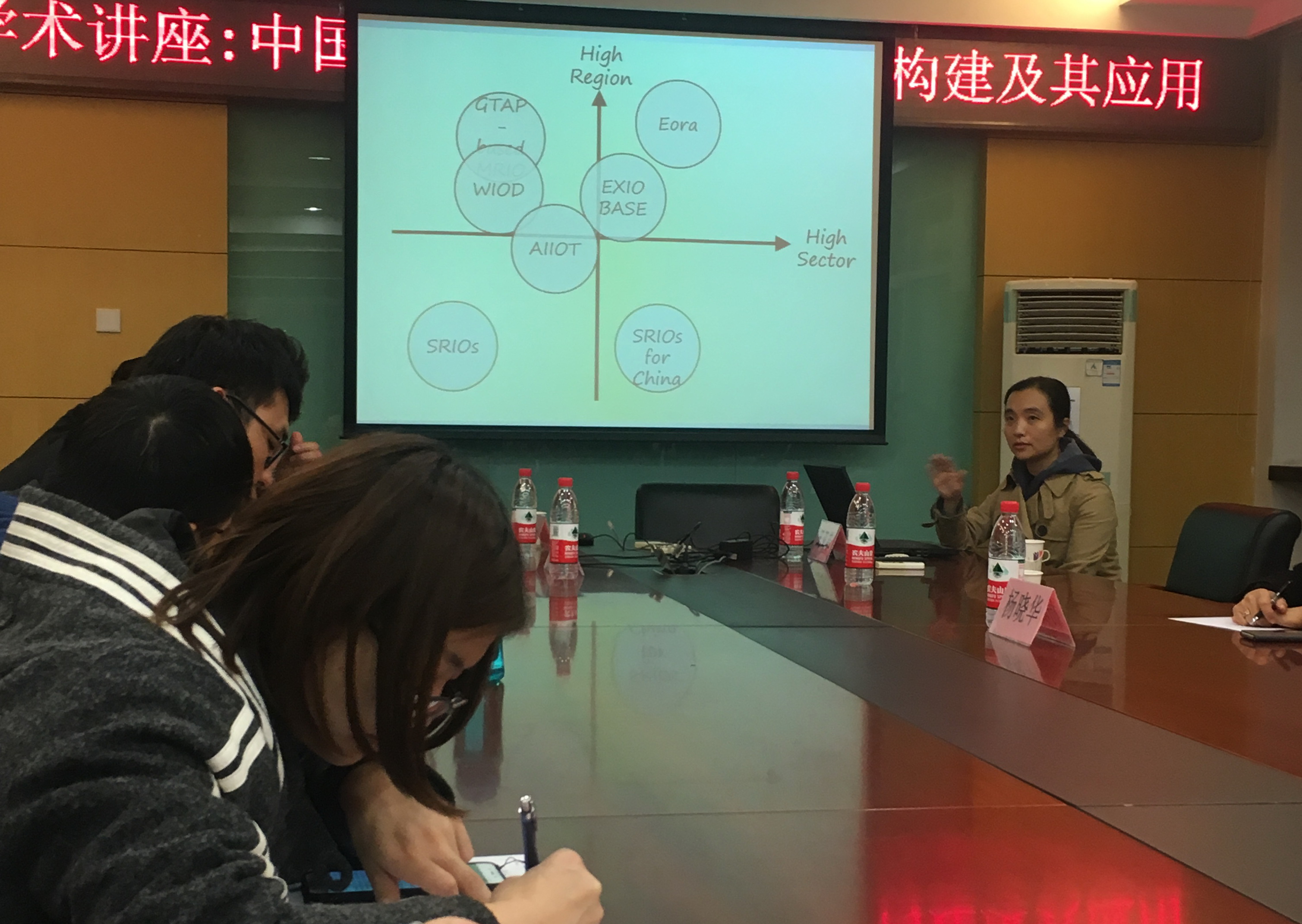 王亚菲教授主要从投入产出表的基本数据库、开发过程及优化约束三个方面介绍了投入产出模型,并介绍了其团队构建的一个全新的、广泛的核算数据库,该数据库包含了全国2874个区县(不含港澳台)的396个部门的数据,使用者可以根据自己的需求,生成自己需要的投入产出表,并进行进一步的优化分析。该数据库还可以与澳大利亚和日本开发的全球投入产出数据库进行对接,形成全球多区域投入产出表。随后王教授通过四个案例介绍了多区域投入产出表的应用。案例1通过生成京津冀14个城市的投入产出表,分析京津冀一体化对于疏解非首都功能的影响。案例2通过构建国内主要城市和国际城市的全球多区域投入产出表,在全球价值链背景下分析碳转移情况。案例3展示了国内省份不平等的转移问题;案例4利用全球库,研究了中国和澳洲共10个城市的碳排放问题,展示了上海实行碳减排对其他城市的影响。