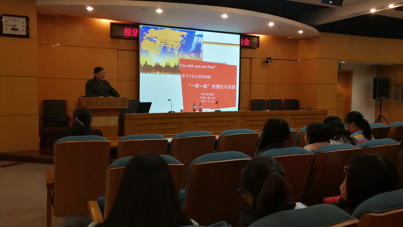 在此次关于“一带一路”的讲座中,陈甬军教授首先对十九届全国人民代表大会的主题进行了解读:决胜与追梦,并提出为什么中国共产党十九届全国代表大会把“一带一路”建设写入党章?并从以下三个方面阐述了“一带一路”倡议:“一带一路”的概念及其提出;丝绸之路的由来;从经济学的角度理解“一带一路”倡议的基本理论模型;在这个模型中,陈甬军教授谈到从供给方来说:中国经济新常态下,产能过剩需要寻找新的市场空间;中国的制造业达到了一定的水平,具备了输出的条件;中国有着庞大的外汇储备,需要寻求稳健的投资项目和机会。作为需求方的中西亚为代表的亚洲国家:市场需求广阔并且有着巨大的资金缺口。“一带一路”倡议为供需双方的供需平衡提供了一个平台。