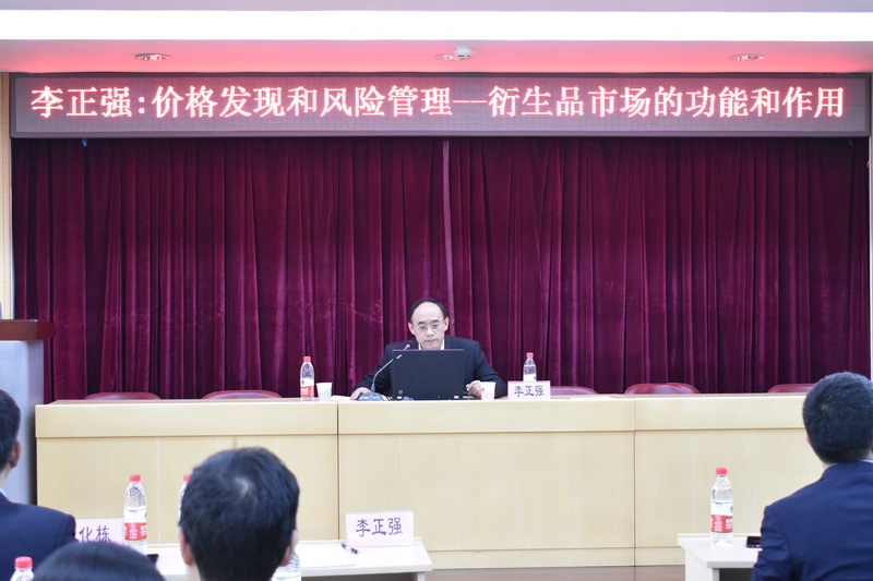 416日下午,在yl23455永利与宏源期货有限公司战略合作签约仪式结束后。大连商品交易所党委书记、理事长李正强博士作了“价格发现与风险管理---衍生品市场的功能与作用”的专题报告。