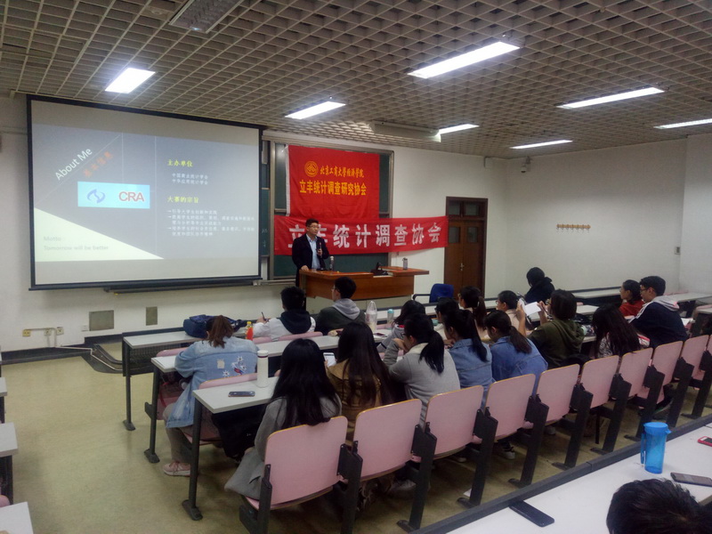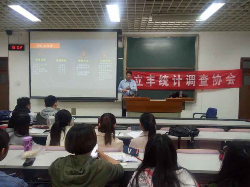 20181030日晚1830,第三届京津冀高校“立丰杯”市场调查与分析大赛暨“第九届全国老员工市场调查与分析大赛”宣传辅导讲座在良乡校区文二406教室如期举办,由yl23455永利统计系主任辛士波老师为主讲,针对本次比赛的基本信息、竞赛流程、团队组织、选题等进行了介绍。全校近200名有意向参与比赛的同学参加了本次讲座。