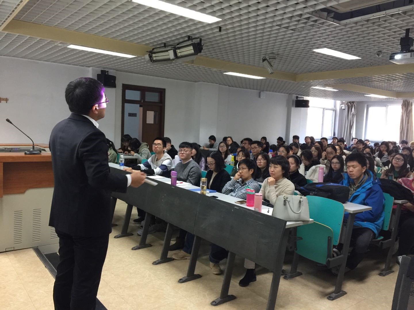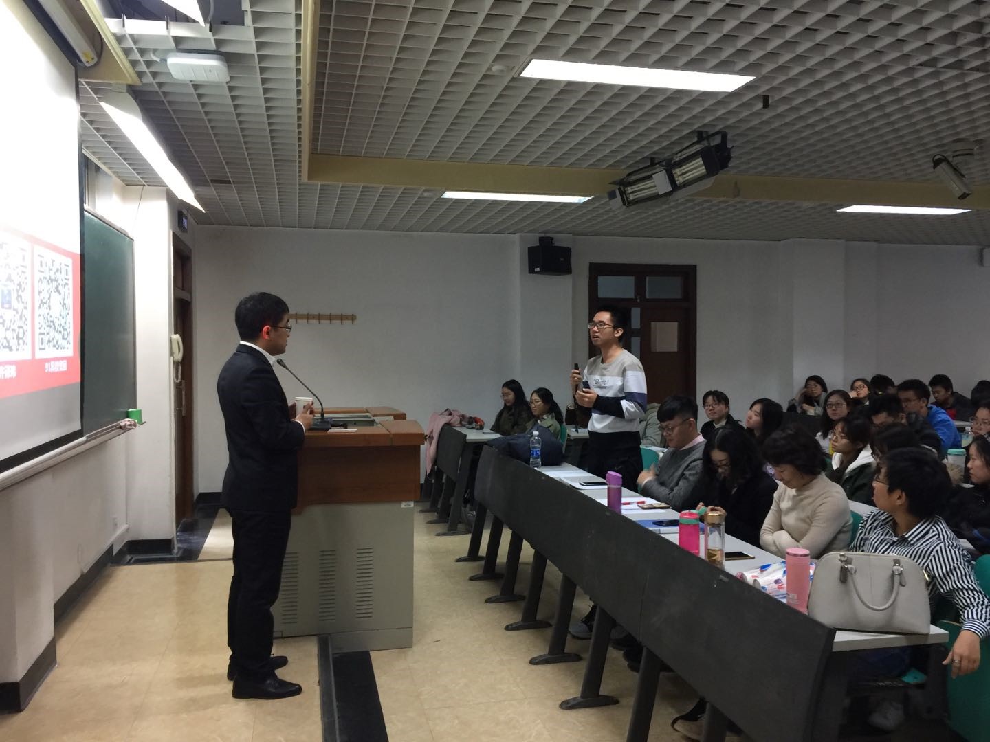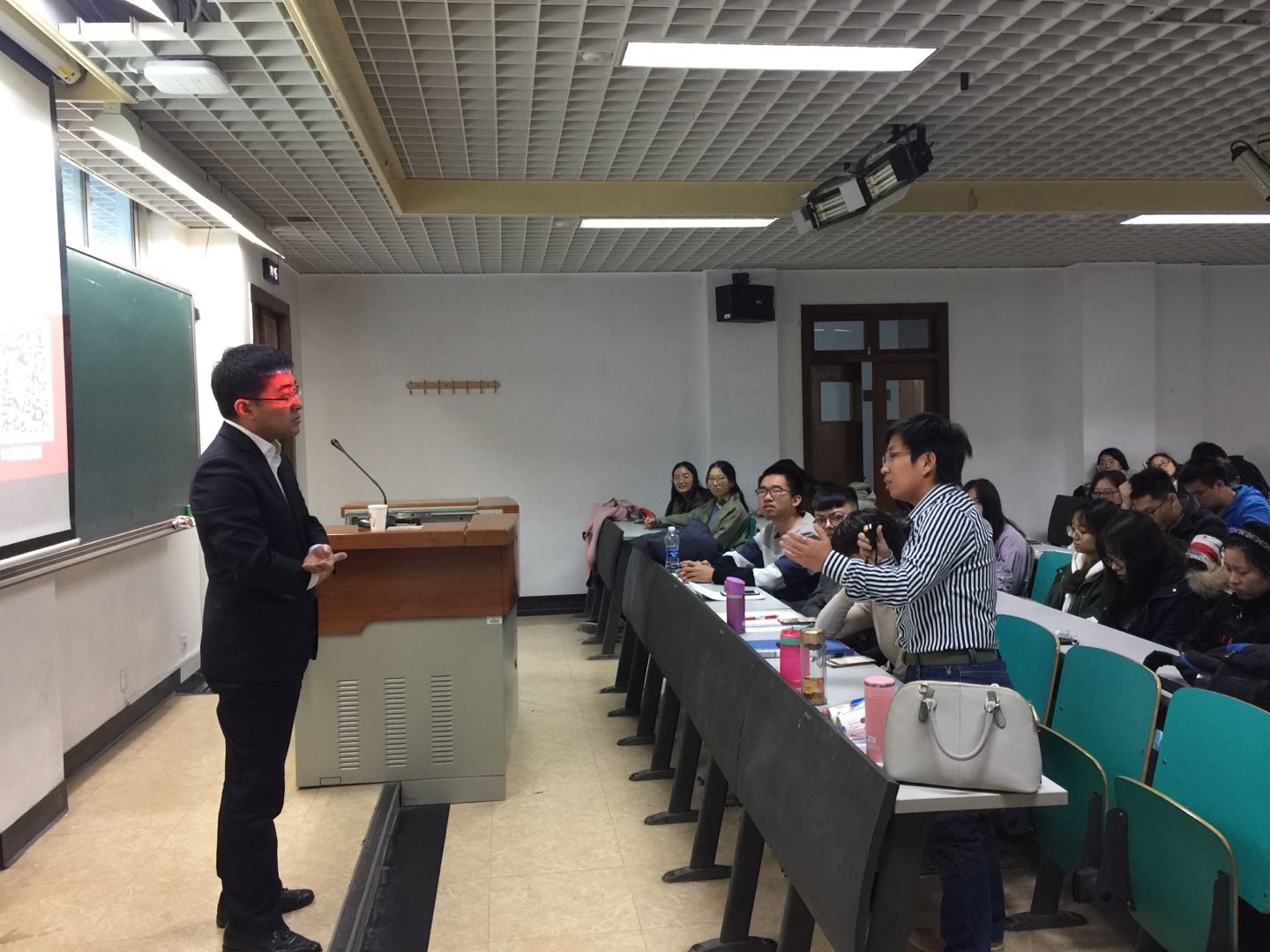 20181121日下午在良乡校区文二208教室,应金融系邀请,91科技集团董事长、CEO许泽玮为公司本科生做了一场题为“大数据开启新金融时代”的精彩专题讲座,本次讲座是我系金融专题系列讲座之一,由我系郑延婷老师主持,金融系樊鹏英、李波和方盈赢老师联合参与。