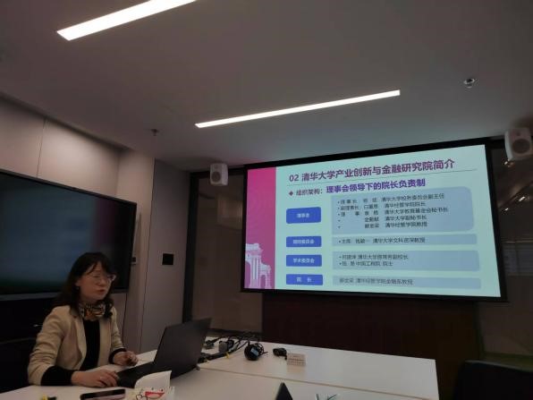 调研会伊始,金融研究院秘书刘颖老师系统介绍了研究院的发展概况、研究方向、核心团队建设情况、开展的主要活动以及取得的主要成绩。