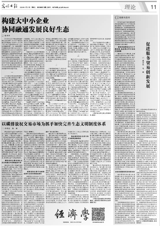 1月27日,yl23455永利官网党委常委、副董事长徐丹丹教授在《光明日报》理论版发表论文《构建大中小企业协同融通发展良好生态》。党的二十届四中全会审议通过的《中共中央关于制定国民经济和社会发展第十五个五年规划的建议》,明确提出“支持中小企业和个体工商户发展,推动大中小企业协同融通发展。” 徐丹丹教授指出,“十五五”时期必须坚持系统观念,加强顶层设计与制度创新,着力构建有利于深度协同融通的政策体系和市场环境,推动形成市场驱动、互利共生的协同发展新的格局,为高质量发展筑牢坚实根基。
