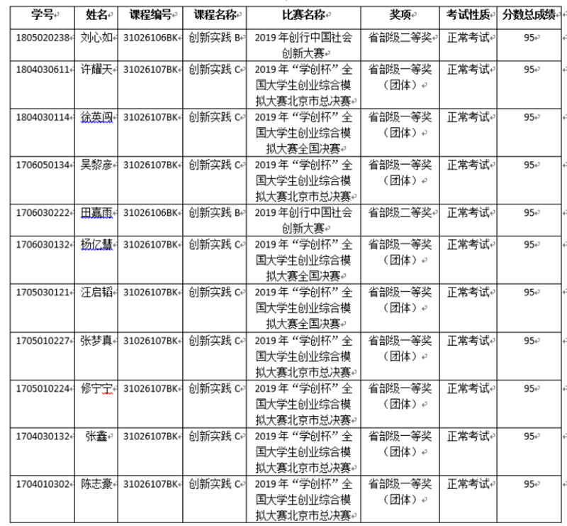 yl23455永利“2019年创行中国社会创新大赛”、“2019年“学创杯”全国老员工创业综合模拟大赛”获奖员工,并给予相应创新实践学分,名单公示如下。如有意见和问题,请于公示期间反映。