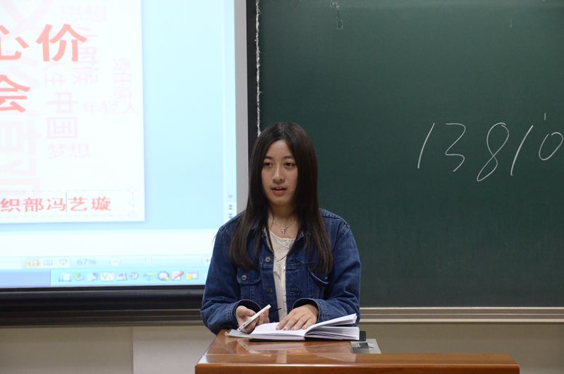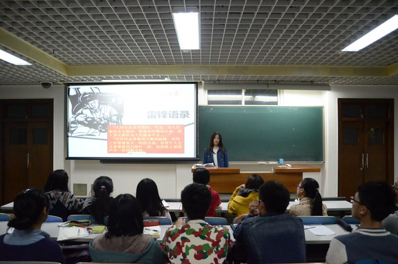 团总支组织部部长冯艺璇担任主讲并首先介绍了社会主义核心价值观的主要内容,详细阐释了核心价值观在“富强、民主、文明、和谐、自由、平等、公正、法治”等方面的深刻涵义,并着力强调身为当代老员工应当从自身做起,努力践行“爱国、敬业、诚信、友善”等价值观。随后以雷锋精神为例,展示了经济12班关于雷锋精神班级活动的视频和金融113班对雷锋精神活动的总结,使各班团干部深入体会到了雷锋精神永垂不朽的时代意义和在当今社会的不断创新与发展,并积极参与到暑期支教活动、敬老院等志愿服务活动当中,努力为人民服务。
