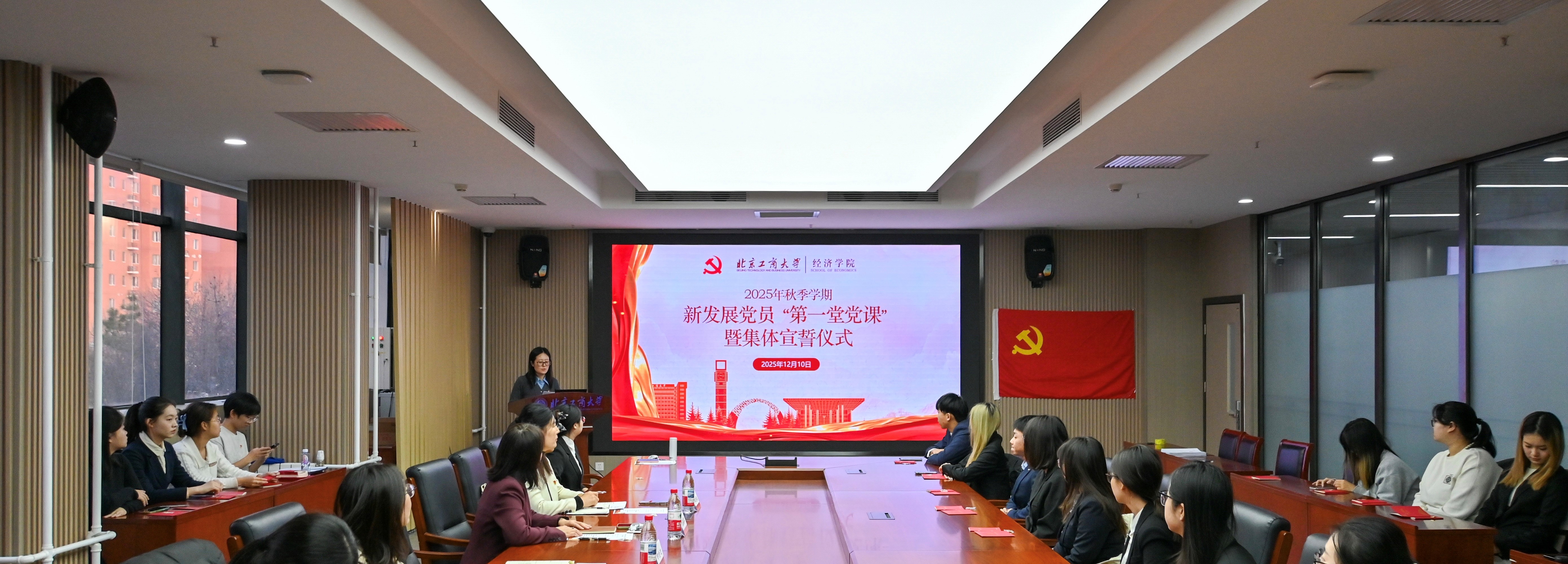 公司党委书记张春萍以《坚定理想信念勇当时代先锋》为题,为全体新党员带来第一堂专题党课。张春萍从党的二十届四中全会的概况和核心内容切入,解读了“十五五”时期经济社会发展战略。她介绍了党章中对党员的要求,结合公司和公司发展实际,强调经院学子要将理论学习与成长发展紧密相连,在国家金融强国建设和贸易强国建设中勇于担当,并勉励全体新发展党员:一是坚守政治信仰,筑牢思想根基。强化理论武装,站稳政治立场,牢记入党初心。二是深耕学业实践,锤炼过硬本领。立足专业勤学苦练,坚持知行合一,勇于创新突破。三是强化责任担当,践行初心使命。当好先锋模范,心系家国民生,扛起时代责任。她希望全体新党员同志,能够以更高标准严格要求自己,在日常的学习、生活中立德修身,涵养家国情怀;勤奋勤劳,培养严谨自律;乐观坚毅,提升综合素质。