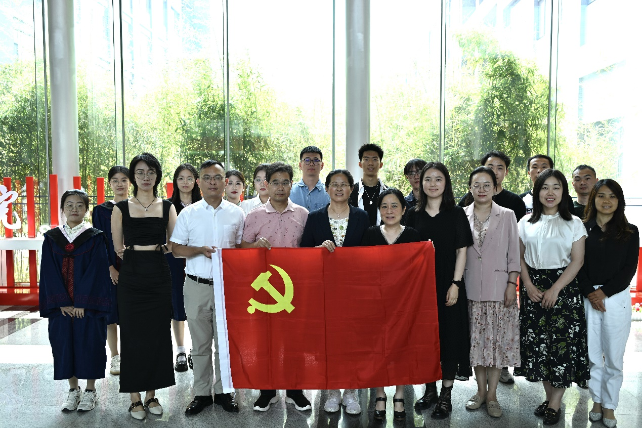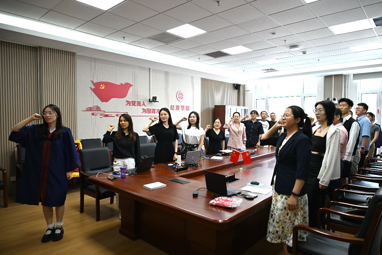最后,在高妍同学的带领下,师生党员庄严地重温入党誓词,铿锵有力的誓词,回荡在会议室,党员们再次感受到作为共产党员的光荣和责任,坚定了为共产主义事业奋斗终身的信念。师生们在党旗前合影留念。每一张笑脸都洋溢着对未来的憧憬和对母校的不舍。通过这次党课活动,毕业生党员们不仅增强了党性修养,也为自己的老员工活画上了一个圆满的句号。