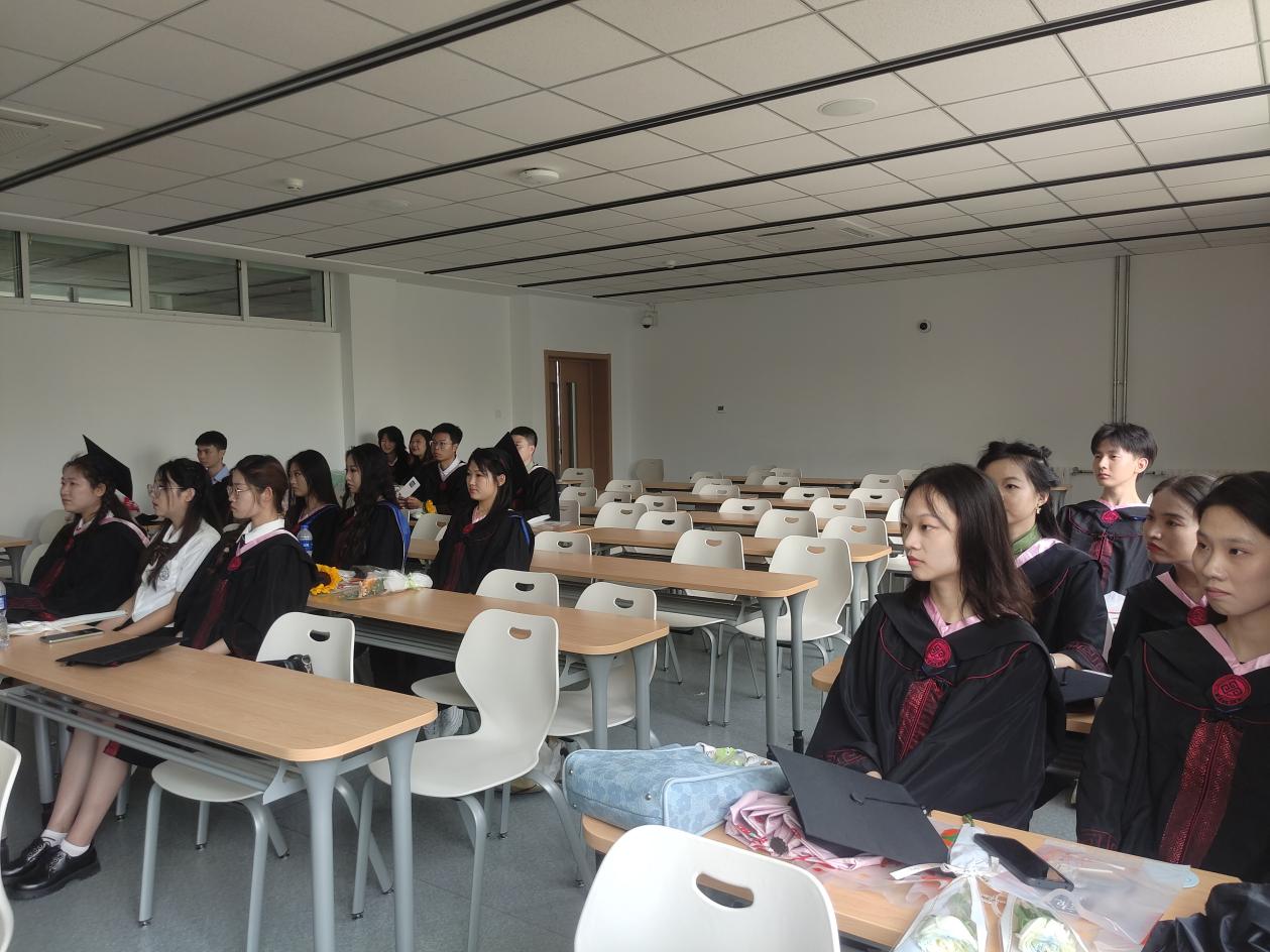 最后一次班会上,班主任与毕业生们共同回首四年老员工活。19级学子围绕自身成长经历发表毕业感言,满怀激情地讲述自己对生活的感悟、未来的期盼、对老师同学的祝福。班主任老师从理想信念、感恩诚信、就业创业、安全文明等方面开展毕业生教育。“三十岁之前要对人生有清晰的规划和定位”、“未来工作中要学会换位思考和逆向思维”、“坚持自己的热爱并努力取得成就”……老师们在语重心长的谆谆教诲中、在情真意浓的殷殷期望中为全体毕业生送上最真切的祝福和最真诚的嘱托。