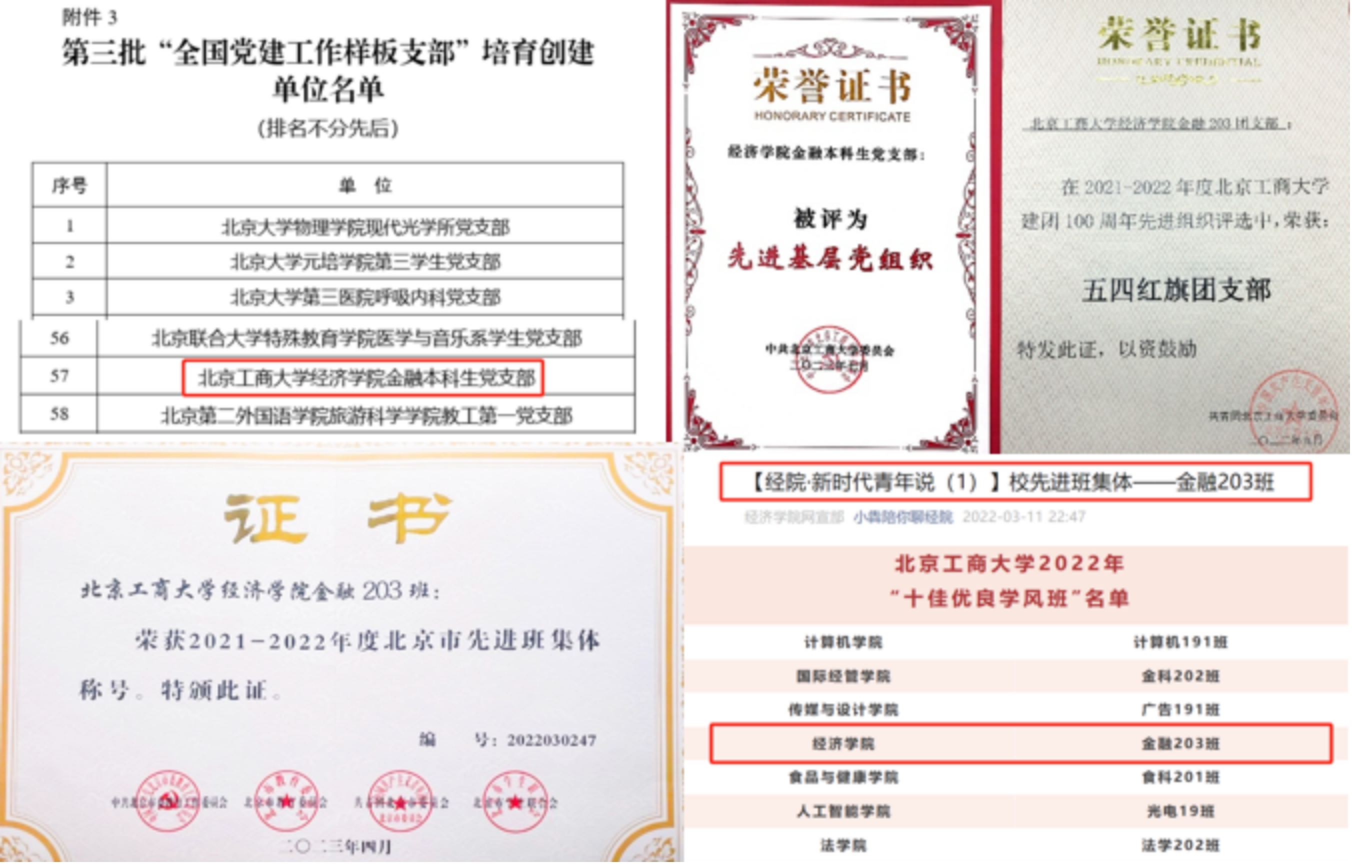 金融203班共36人,在班主任徐凤老师的带领下,班级同学共同秉持“行远自迩、笃行不怠”的朴实班风,砥砺奋进、勤勉好学。班级深入学习贯彻党的二十大精神,推动党的二十大精神走深走实,大力推行以党建带团建、以团建促班建的“党团班一体化”建设,充分发挥党团组织的模范先锋引领作用。党员所在党支部入选第三批“全国党建工作样板支部”并荣获“yl23455永利官网先进基层党组织”等荣誉称号,团支部对标定级五星团支部并荣获“五四红旗团支部”等荣誉称号,班级共获北京市“先进班集体”、yl23455永利官网“十佳优良学风班级”等18项荣誉称号。