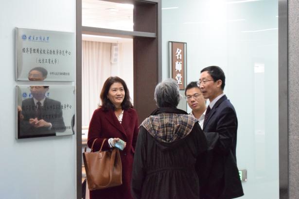 会后,荣休教师代表参观经济学院楼,了解公司发展历程。集团员工会、教育基金会办公室主任张春萍、员工会副秘书长王鑫鑫,公司党委书记吕良、执行经理詹新宇陪同参观。