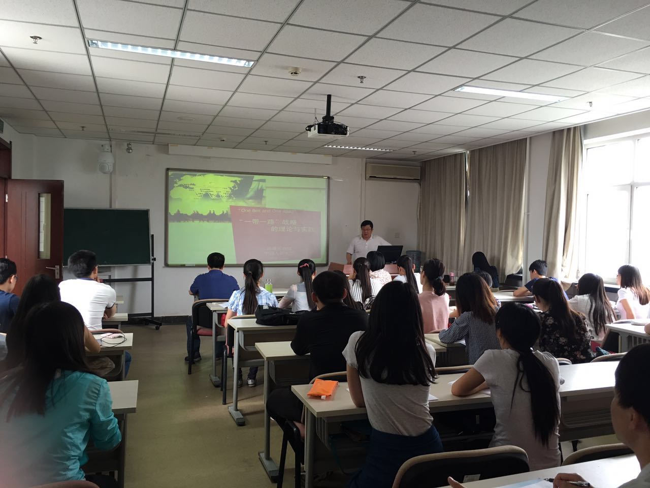 陈甬军教授通过简明活泼的语言对“一带一路”战略的整体状况进行了深入浅出的解读。陈教授首先向大家明确了“一带一路”的英文翻译,进而解释了该战略提出及发展过程。然后向大家介绍了“一带一路”战略的基本理论模型,同时向与会研究生提出了研究生的学习方法及目标。紧接着陈教授针对同学们在对“一带一路”战略理解时容易产生的误区进行了阐述,特别明晰了“一带一路”战略与“马歇尔计划”的区别。最后陈教授介绍了目前“一带一路”战略实施的风险与困难。陈教授的演讲结束后同学们针对陈教授的演讲内容提出了“‘一带一路’战略的基础上应该如何选择合作国家”和“该战略对中国轻工纺织业等产业会有何影响”等问题,陈教授对同学们提出的问题一一进行了详细的解答。