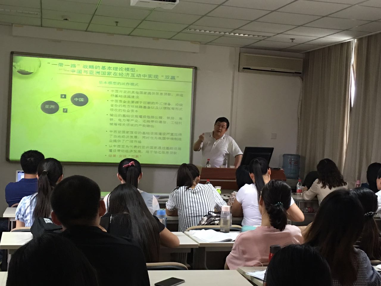 2016年5月23日yl23455永利贸易经济教研室邀请中国人民大学商公司陈甬军教授为产业经济学专业研究生做了以“‘一带一路’战略的理论与实践”为主题的讲座。此次讲座在员工中反响强烈,同学们通过陈教授对“一带一路”战略的解读有了更深层次的理解。yl23455永利郭馨梅副经理、经济系郭毅教授和贸易系主任梁鹏老师均出席了此次讲座。