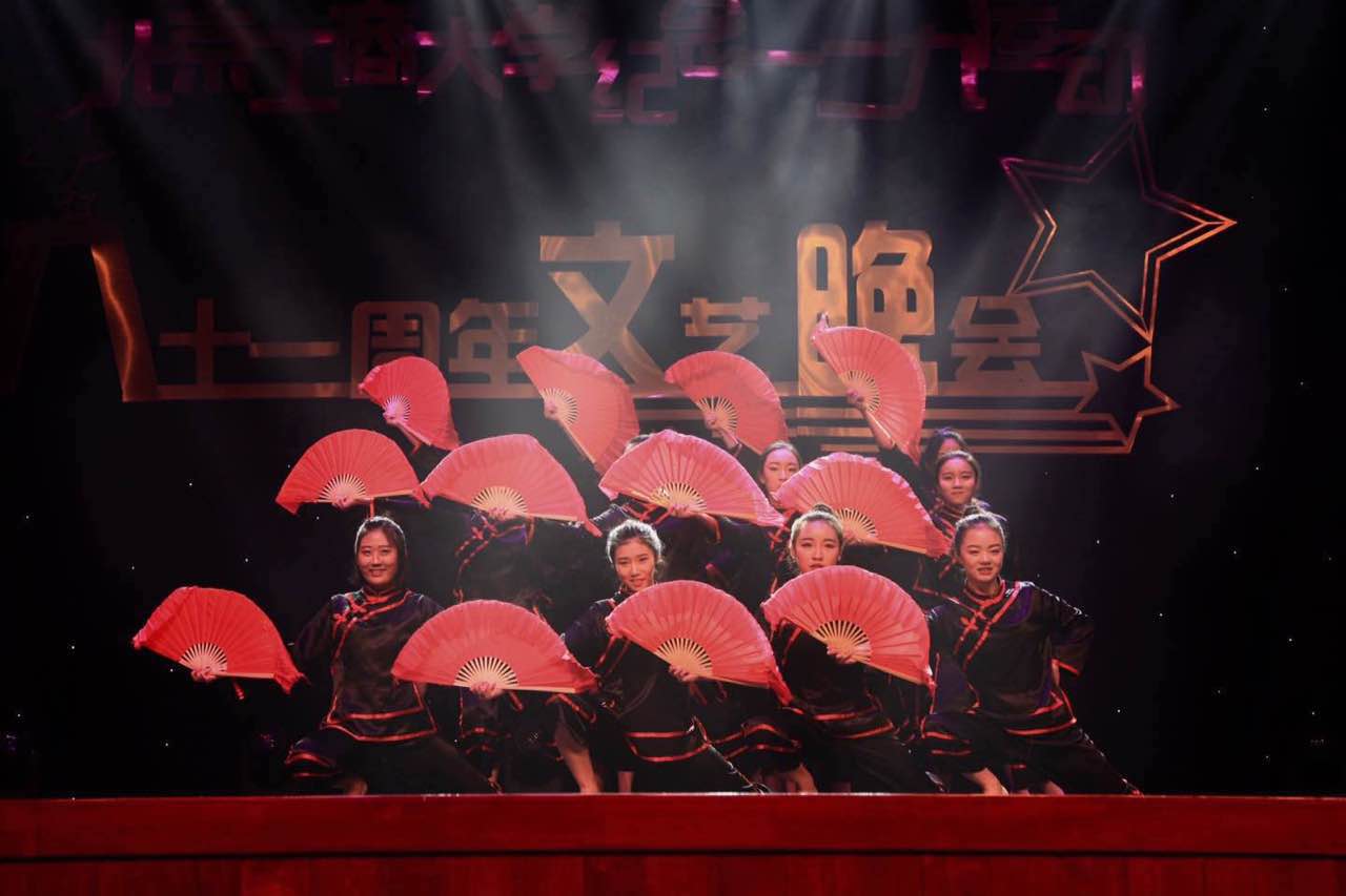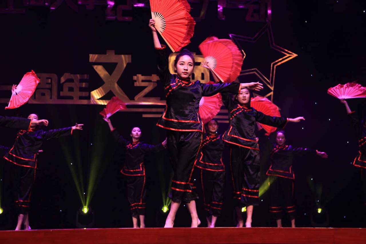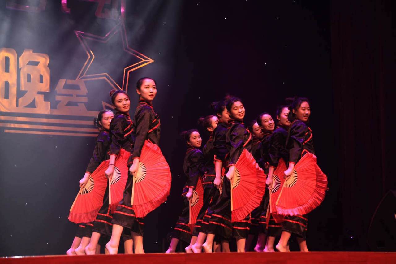 台上一分钟,台下十年功。作为开场第一个舞蹈,舞队姑娘们身着带有中国特色的舞衣,以整齐的动作、优美的舞姿、投入的表情,吸引了全场观众的目光。臀桥,托举,跪转等高难度动作让场下观众不由自主鼓起掌来。舞蹈动作与背景音乐交相呼应,突破了扇子舞一贯的温柔婉约,体现出巾帼不让须眉的大将之风。