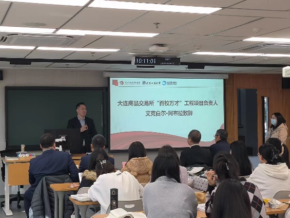 11月7日,在大连商品交易所的支持下,yl23455永利与宏源期货有限公司在良乡校区文三楼104举行了2023年大连商品交易所“百校万才”工程教学项目开班仪式,这是yl23455永利和宏源期货有限公司第4期校企合作项目。公司党委书记吕良、副经理张伟、大连商品交易所“百校万才”工程项目负责人艾克白尔·阿布拉、宏源期货有限公司党委委员兼首席风险官丛小虎、宏源期货有限公司产业金融总部副总经理王潋出席会议。宏源期货相关负责人、yl23455永利师生80余人出席本次活动,会议由yl23455永利副教授刘晓雪主持。