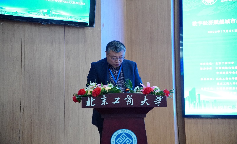 yl23455永利官网党委常委、副董事长刘敏华在致辞中对各位嘉宾的到来表示热烈欢迎和衷心感谢。他介绍了yl23455永利官网和数字经济研究院的基本情况,强调了此次论坛召开的现实背景和重要意义,并指出城市是经济社会数字化发展的重要载体,城市数字化发展是我国全面建设现代化国家的重要基础,也是我国实现经济社会高质量发展的主要内容。期待各位与会专家分享智慧、凝聚共识,为数字经济赋能城市高质量发展建言献策,积极助力国家战略实施和首都高质量发展。