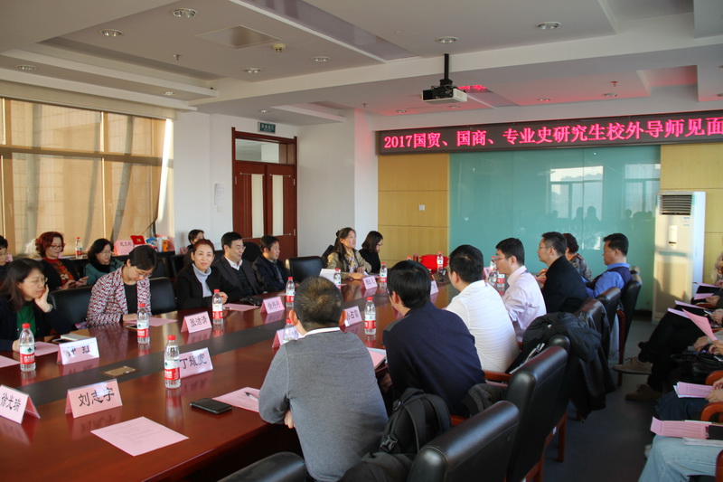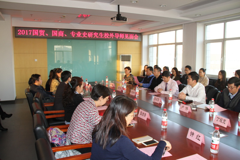 11月15日,2017级国际贸易学、国际商务、专门史硕士研究生校外导师师生见面会在阜成路校区综合楼801会议室如期举行。来自一线企业、事业单位、研究机构、行业协会的十多位校外导师,冒着严寒拨冗莅临师生见面会现场。国际贸易学学科带头人、科技处处长和巴基斯坦科技与经济研究中心主任张晓堂,yl23455永利经理徐丹丹,贸易系主任郑兰平,贸易系副主任郭志超和国贸学科其他校内导师以及2017级国际贸易学、国际商务、专门史硕士研究生近50人参加了本次会议,会议由贸易系副主任、教研室主任朱振荣主持。