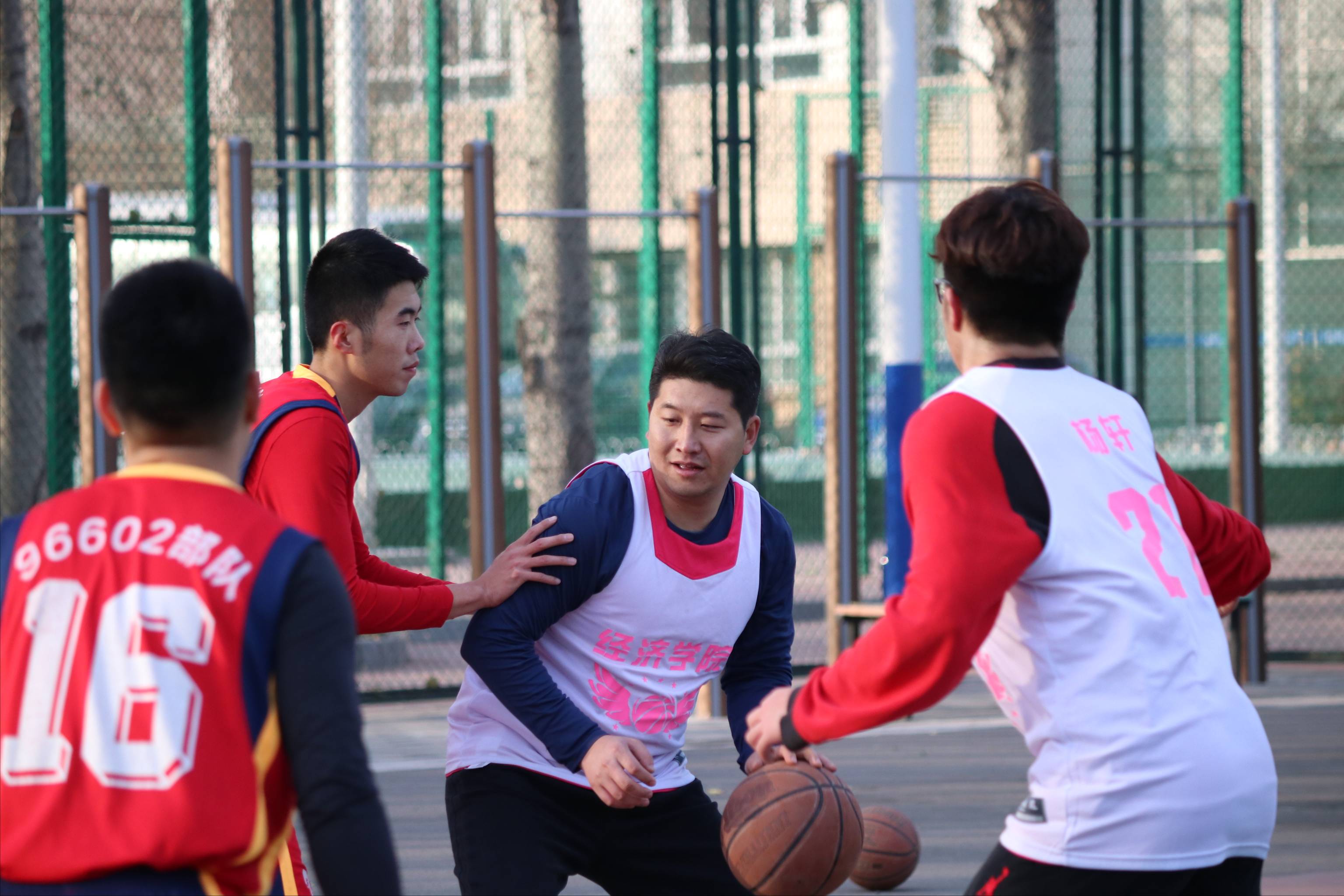 双方轻装上阵,稍作热身后比赛准时开始。院队先声夺人,率先得分,士气高涨,而彼队迅速重整旗鼓,稍作磨合,一路反击,比分反超并遥遥领先yl23455永利篮球队。部队队员各有优势,分工明确,用一套强力的快攻方法连夺几阵喝彩。此消彼长之下院队渐露疲态,中场后稍作调整,全力反击,以高速突破连夺几球,比分差距逐渐减小,并用一手空中帽强势打断彼队攻势,两手三分完美进攻,引爆全场。比赛进入尾声时两队的比赛已经演化为一场龙争虎斗的拉锯战,比分双向浮动,篮板、抢断……几度诠释了赛场的激情。场下观众鼓掌喝彩,被精彩的比赛深深感染。几轮激烈进攻下,比赛最终以51:51结束,双方比分平,场上选手们互相握手拥抱,场下观众欢呼喝彩。