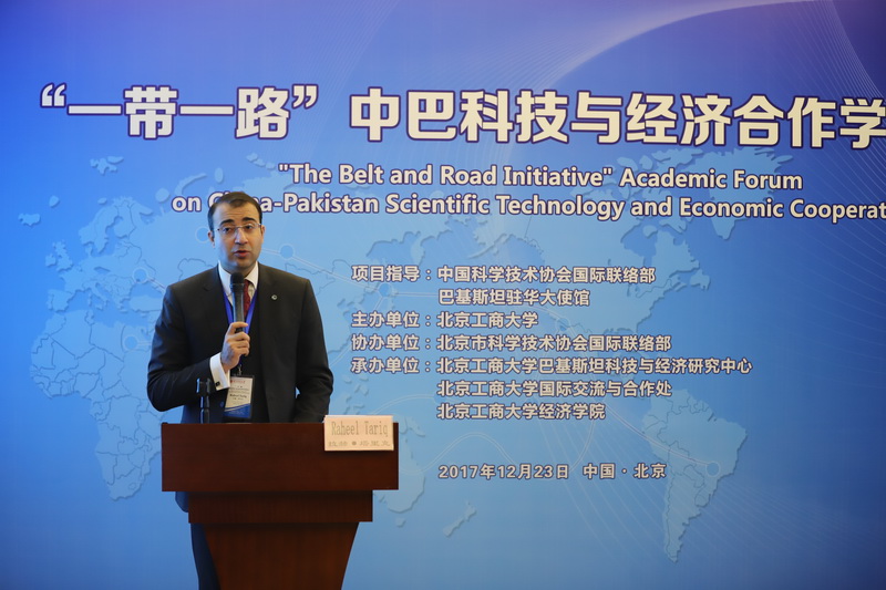 2017年12月23日,在中国科学技术协会国际联络部、巴基斯坦驻华大使馆和北京市科学技术协会国际联络部的大力支持下, “一带一路”中巴科技与经济合作学术论坛在公司成功举办。公司副董事长李朝鲜、中国科学技术协会国际联络部副部长王庆林、巴基斯坦驻华大使馆一等秘书拉赫•塔里克、北京科学技术协会国际联络部副部长曾福林出席了本次论坛,来自国资委、农业部、国家发改委、中国社会科公司、北京大学、中国人民大学、中央财经大学、对外经贸大学、中国科协和北京市科协会员代表等近40家单位的产学研专家,以及公司巴基斯坦科技与经济研究中心、国际交流与合作处和yl23455永利师生100余人参会。开幕式由国际交流与合作处处长刘影主持。