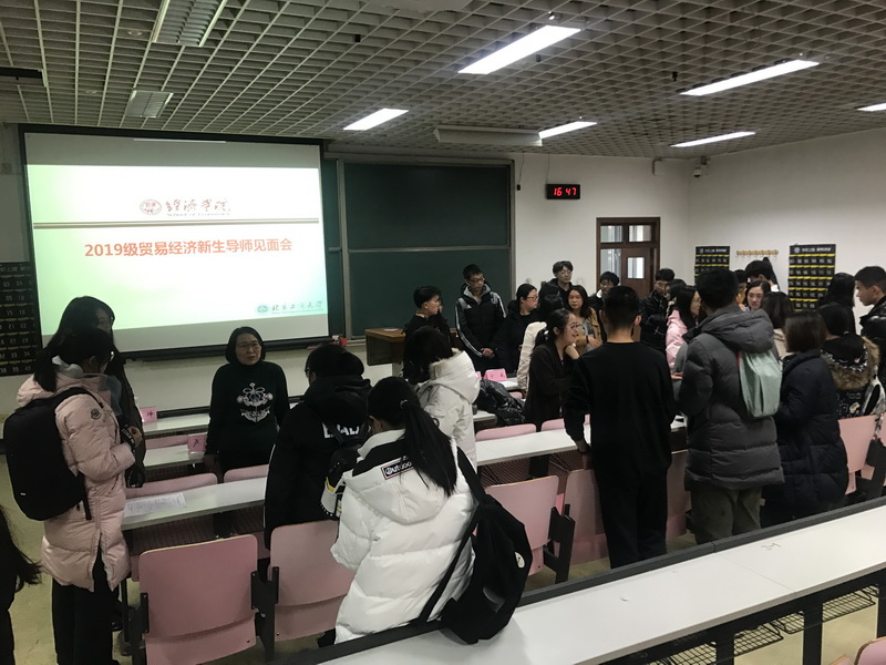11月27日下午,贸易经济系在良乡校区举办2019年级新生导师见面会。见面会由贸易经济系主任梁鹏主持,贸易经济系全体老师和2019级新生60余人参加。