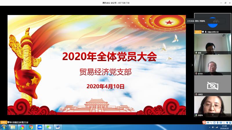 4月10日晚,贸易经济党支部通过腾讯会议平台,召开支部全体党员大会,支部书记梁鹏同志主持会议,支部全体党员参加。