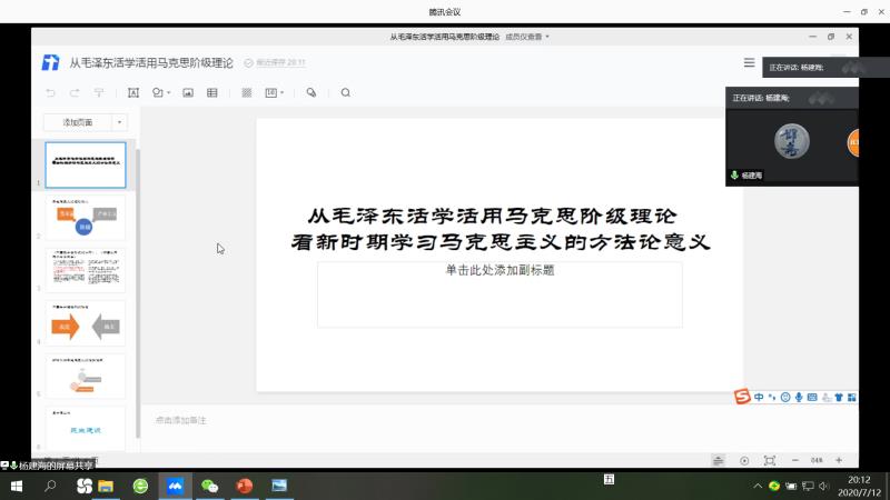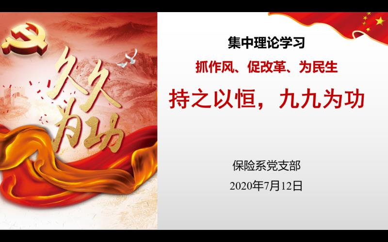2020年7月12日晚8点,保险系党支部召开全系集中理论学习会,会议以腾讯会议的形式开展。会议由支部书记吉彩红老师主持,保险系全体党员教师及非党员教师参加了会议。