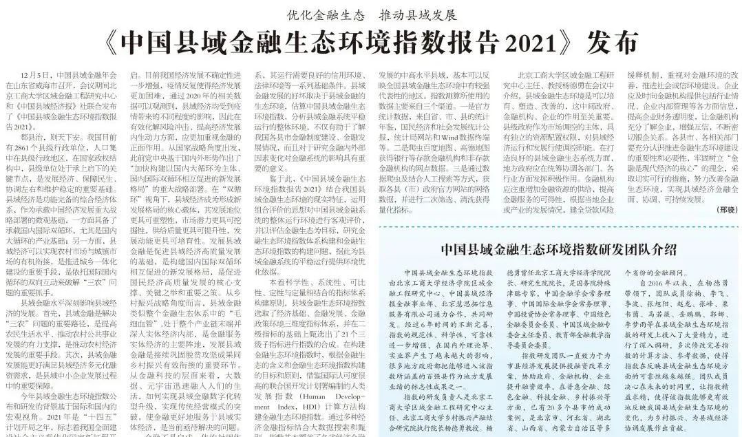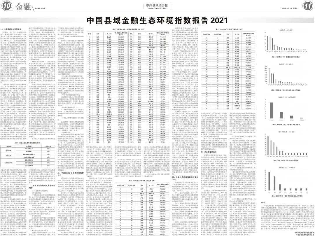日前,yl23455永利官网区域金融工程研究中心和《中国县域经济报》社联合发布了《中国县域金融生态环境指数报告2021》。今年是公司进行中国县域金融生态环境指数研究的第六年。
