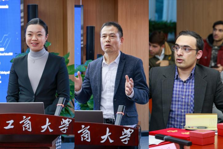 接下来的主题发言环节由数字经济教研室副主任韩璐主持。李慎国、阿玛尔·穆罕穆德、刘云晖、马吉德·汗、卡姆兰·阿敏结合自身经历和实践,分别从不同角度做了主题为《激活智能时代,启迪美好世界》、《来华职工的就业学习指导》、《“一带一路”倡议的创新实践》、《国际员工的创新创业动机》、《从实验室到市场:释放挖掘锂电池的创业潜力》的精彩演讲,之后中外员工积极与各位创业导师进行了互动交流。