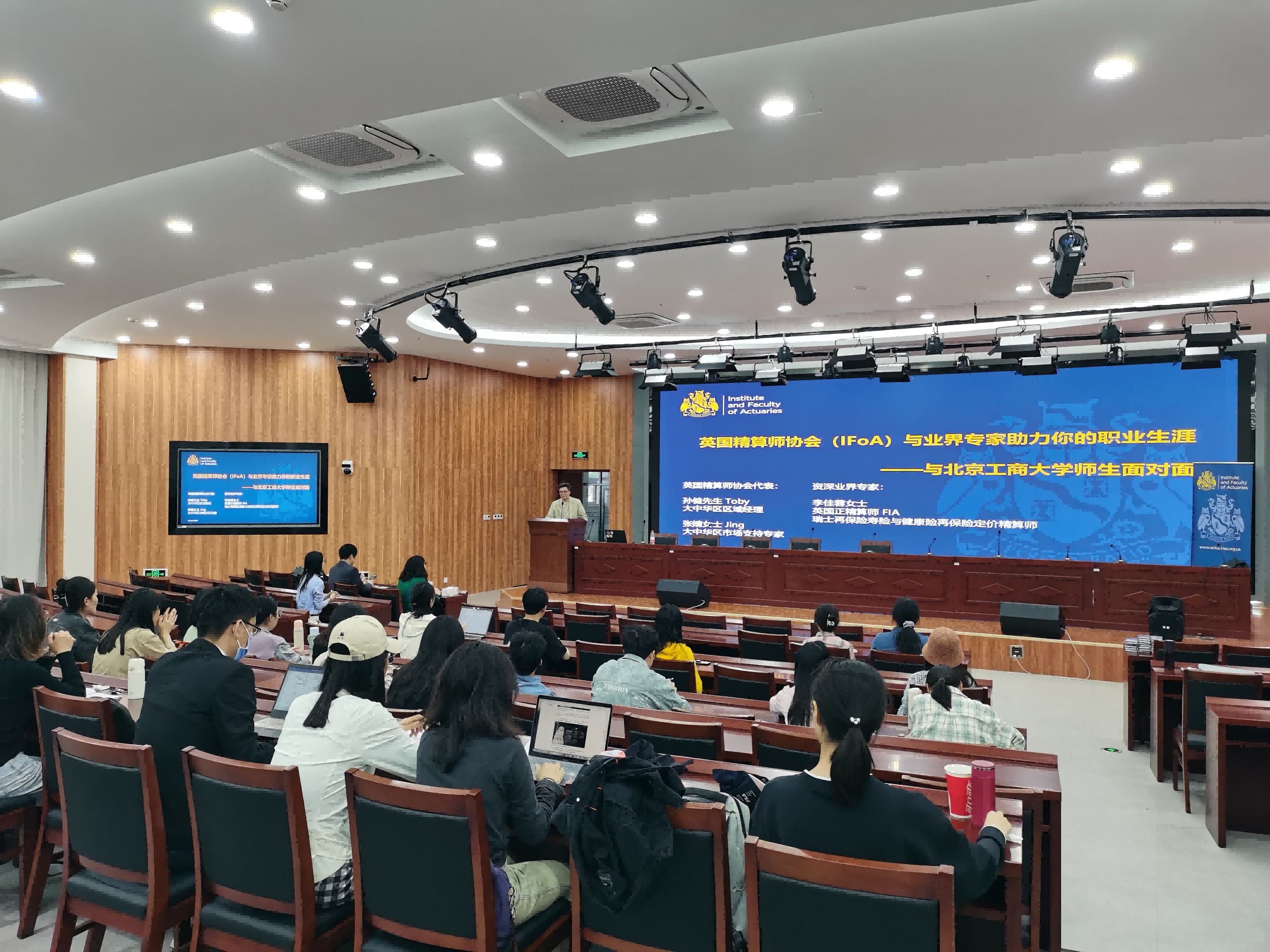 首先,“英国精算师协会(IFoA)与业界专家助力你的职业生涯”主题讲座及交流活动在求真学堂举行。活动由风险管理与保险学系副主任乔杨主持,yl23455永利官网中国保险研究院常务副经理宁威致词并介绍了到来的嘉宾。