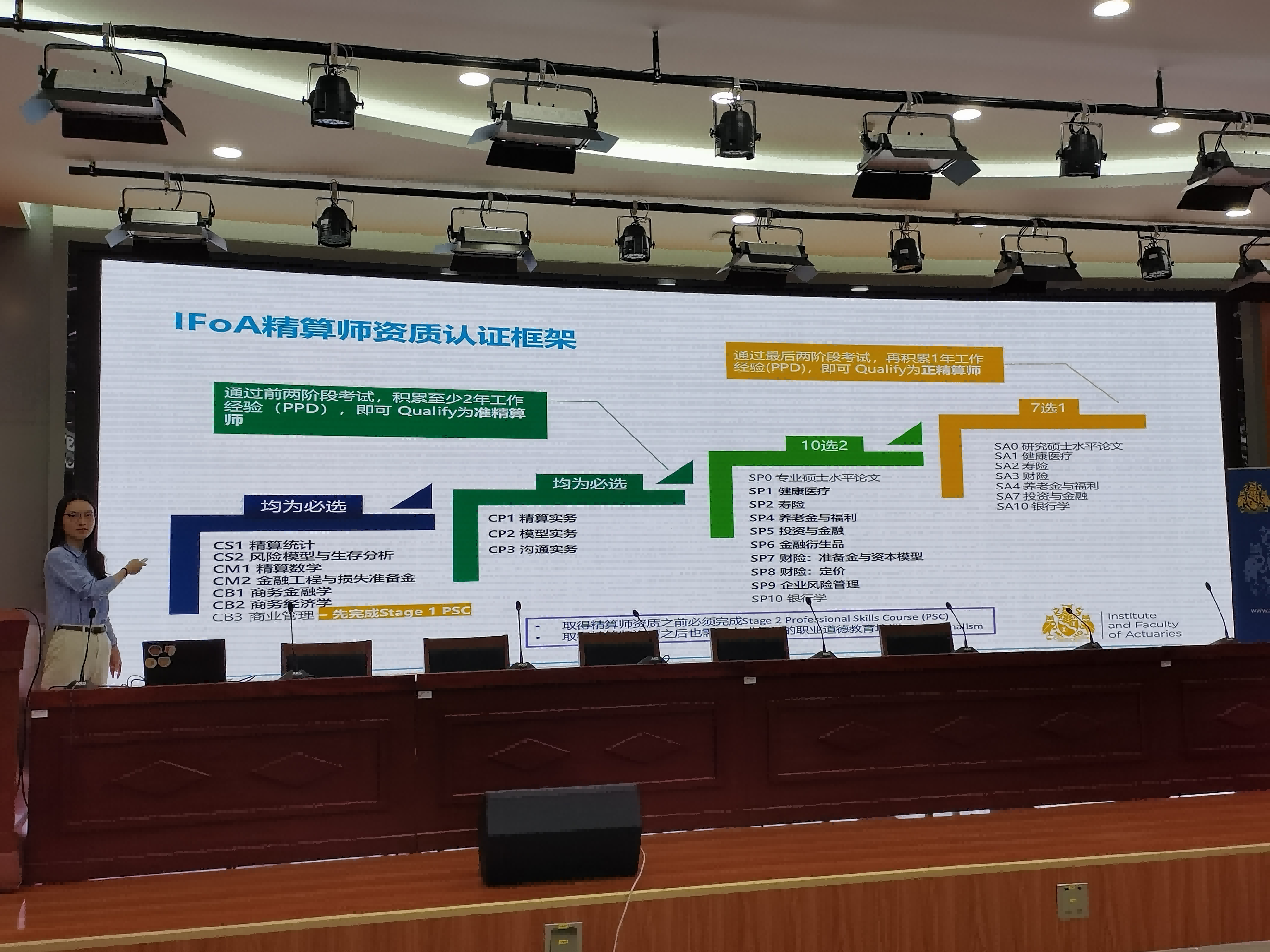 英国精算师协会大中华区市场支持专家张婧女士为同学们带来了下半场的讲座。张婧女士首先介绍了精算学科及精算师职业,以及成为精算师的几个必要因素。随后介绍了英国精算师考试体系,并对公司取得的豁免认证及对应科目进行了详细介绍。基于公司的英国精算师国际认证项目,保险及精算专业同学在学习精算课程并通过相应考试后,可以获得英国精算师准精阶段6个科目的免考资格,为成为职业精算师做好准备。最后,她向同学们介绍了精算师的发展前景和薪资水平等有趣的话题,让同学们对精算师职业有了更深入的认知。