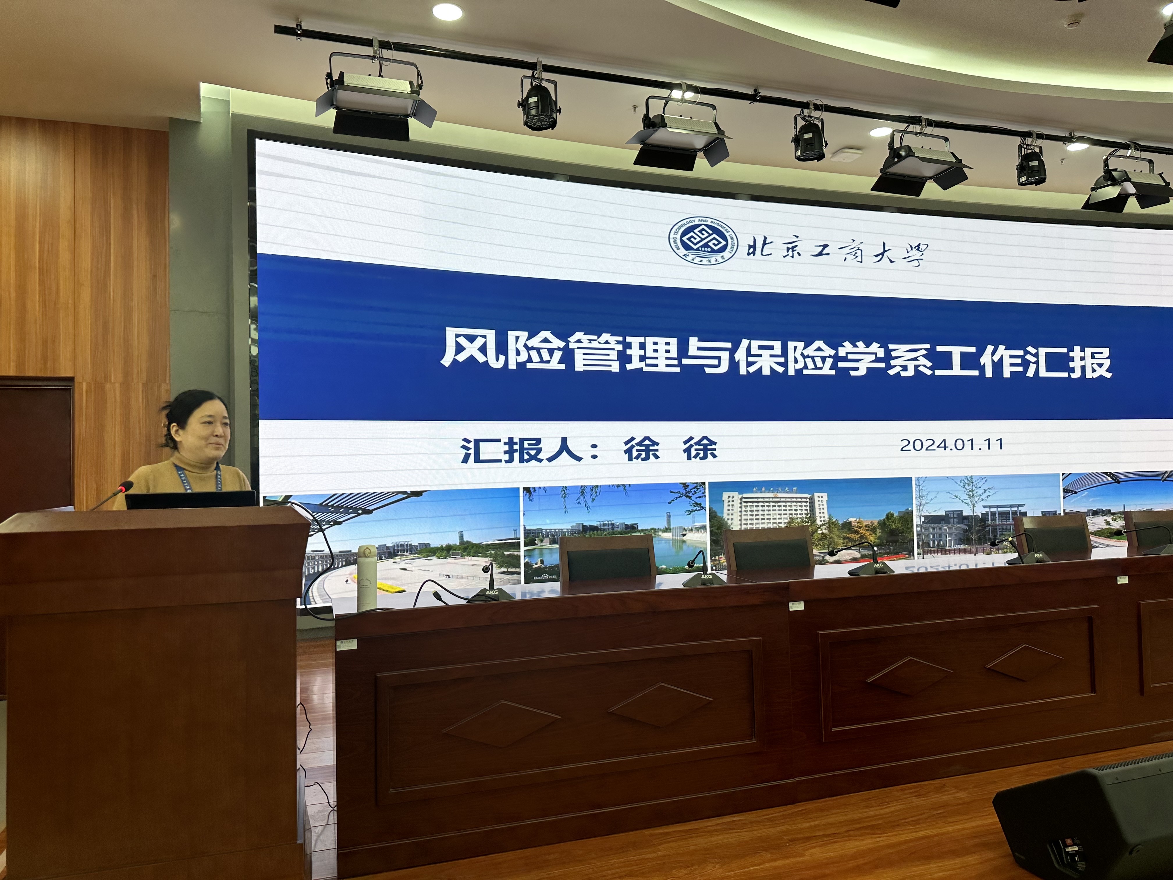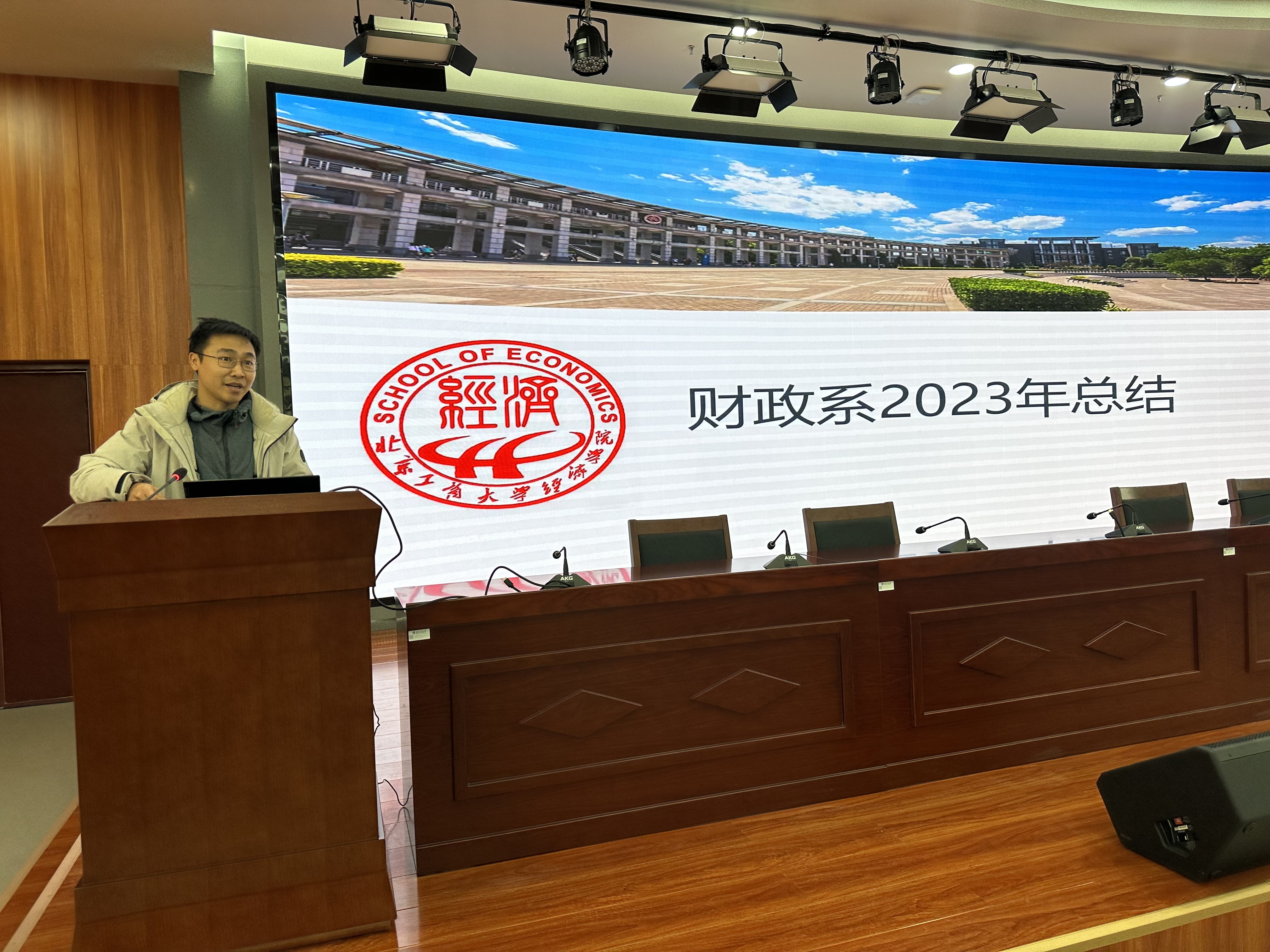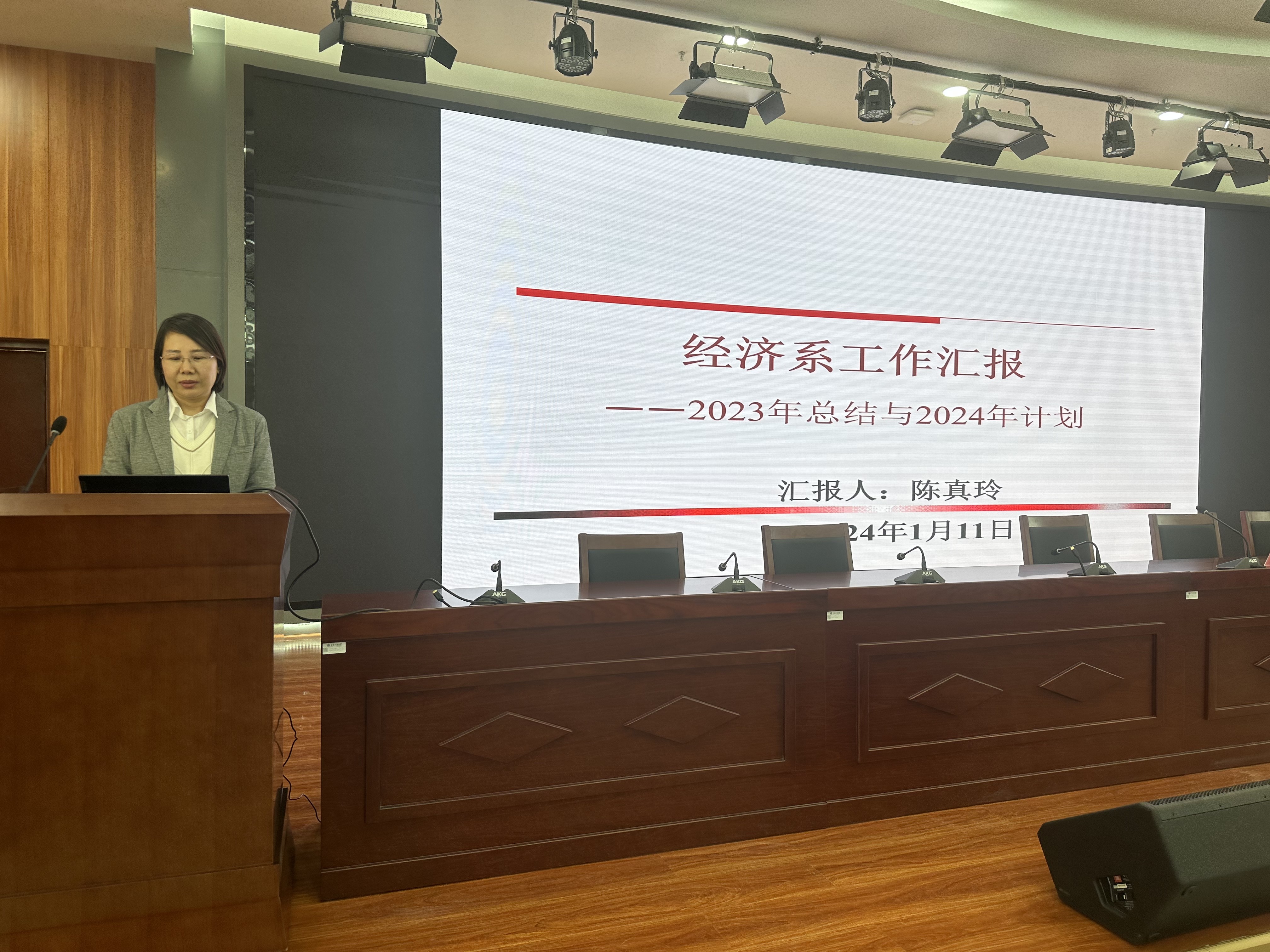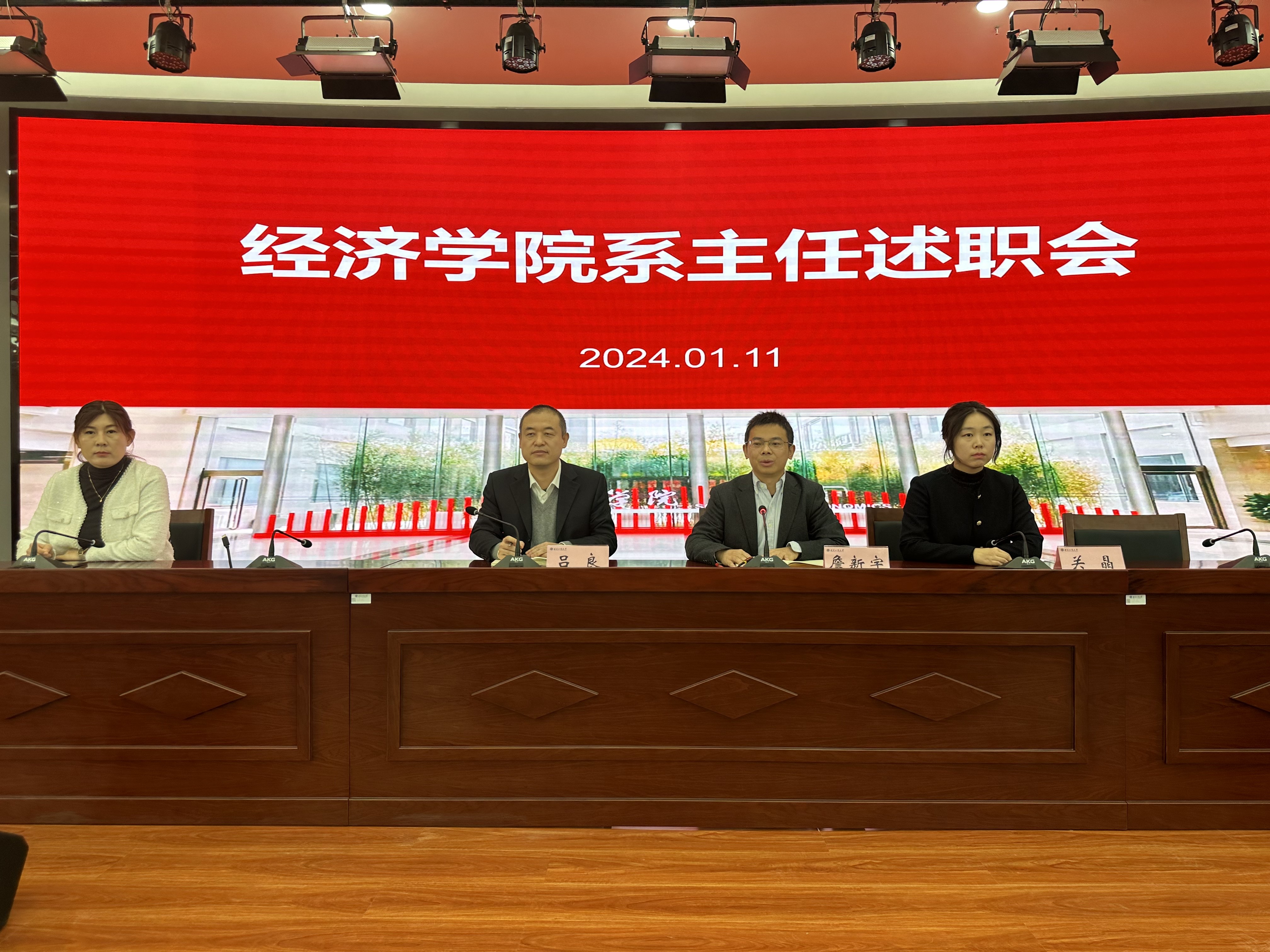 根据会议议程安排,经济系主任陈真玲、贸易经济系副主任曹刚、国际经济与贸易系主任郭志超、金融系主任李飞、风险管理与保险学系主任徐徐、财政系主任邓磊和文科实践中心主任熊文依次上台述职。各位系(中心)主任全面汇报了2023年度工作成绩和亮点,内容涵盖团队队伍建设、党建工作、公司产品、人才培养、论文发表、科研项目、学术活动等方面,并结合自身工作感悟、数据对比等方式,深刻剖析了各系(中心)存在的主要问题及不足,提出了具体改进措施。在此基础之上,各位系(中心)主任还简要汇报了2024年度发展规划和工作设想。