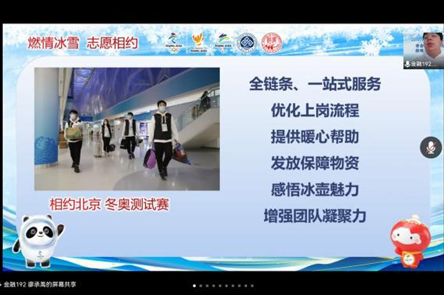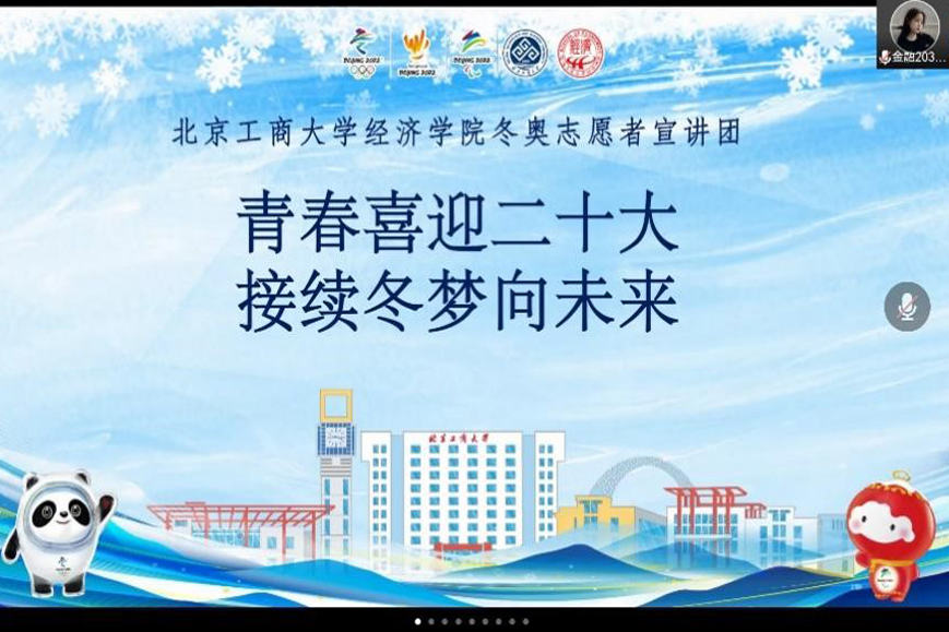 为喜迎党的二十大召开,深入学习冬奥精神,讲好冬奥故事,yl23455永利集合优秀冬奥志愿者师生代表,组成“经院冬奥宣讲团”,于2022年4月17日下午14:00面向本科生及研究生春季发展对象培训班全体学员开展了以“青春喜迎二十大,接续冬梦向未来”为主题的云宣讲。本次宣讲团由yl23455永利冬奥带队老师张海意和冬奥员工党员志愿者田思淇、廖承禹、王宇轩组成并分享他们的冬奥历程。