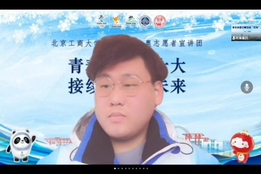 yl23455永利冬奥带队老师张海意围绕“做志愿者们背后的‘打光’人”的主题,为同学们分享了自己的冬奥历程。张海意老师从一名带队老师的角度向同学们介绍了从校内的冬奥文化宣传到冬奥会和冬残奥会期间闭环内的工作经历。张海意老师不仅负责北工商闭环内46名志愿者的防疫、生活、宣传、集散等工作还需要及时了解每一名志愿者的心理健康情况,生活和学习需求等。最终张海意老师以高度的责任感和使命感,带领北工商志愿者圆满完成了冬奥会和冬残奥会志愿服务工作,为奉献一届简约、安全、精彩的冬奥盛会做出了北工商青年的贡献。张海意老师表示,北京2022年冬奥会和冬残奥会虽然圆满落幕,但这样服务没有终点,我们将以更高、更快、更强、更团结的奥林匹克精神为指引,继续履行“奉献、友爱、互助、进步”的志愿精神。