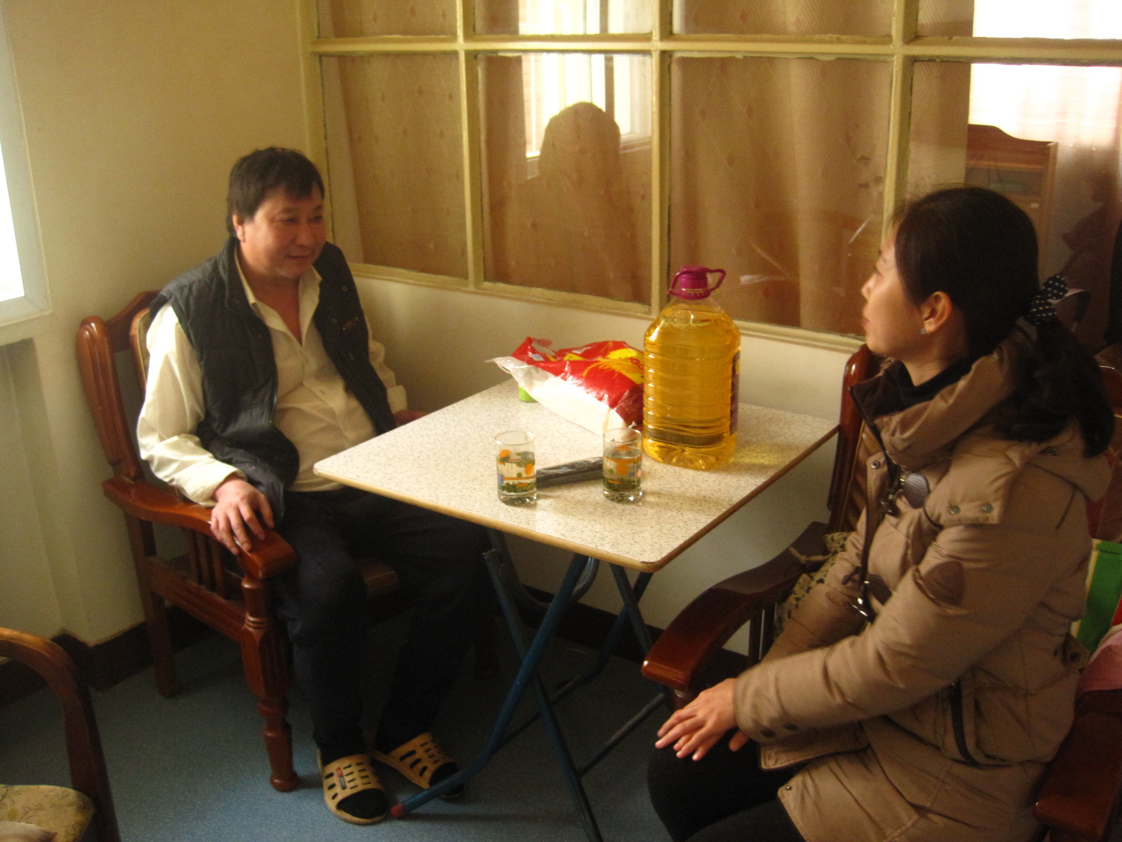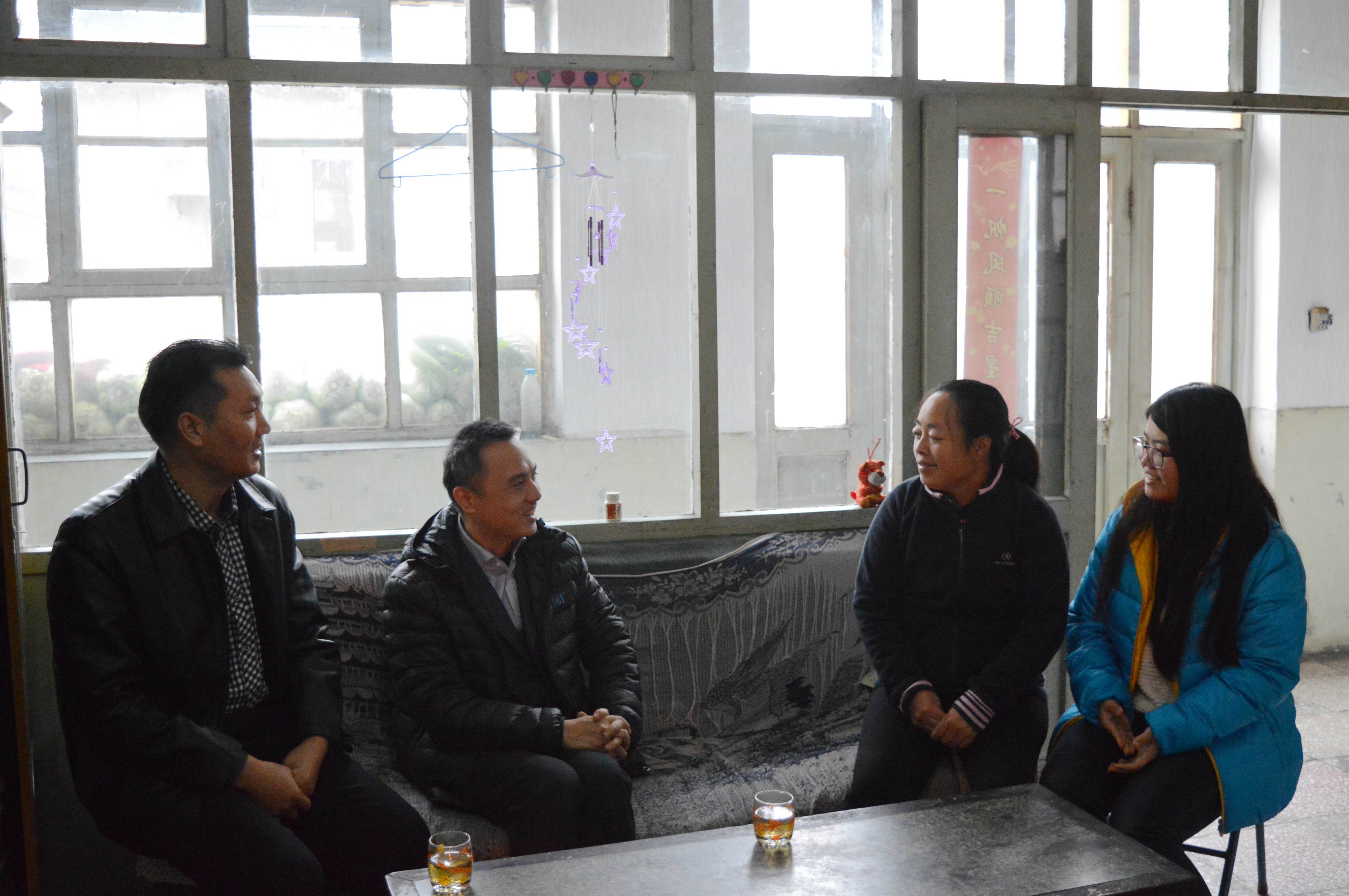 公司党委副书记杜亚辉与贫困生家庭交谈,了解员工家庭的生活、生产和经济状况,表达了公司的慰问与关怀,并介绍了公司公司相关的资助工作情况。受访家庭对员工受到的资助与关怀表示感谢,并咨询了员工医药费报销、参评奖助学金等事宜。
