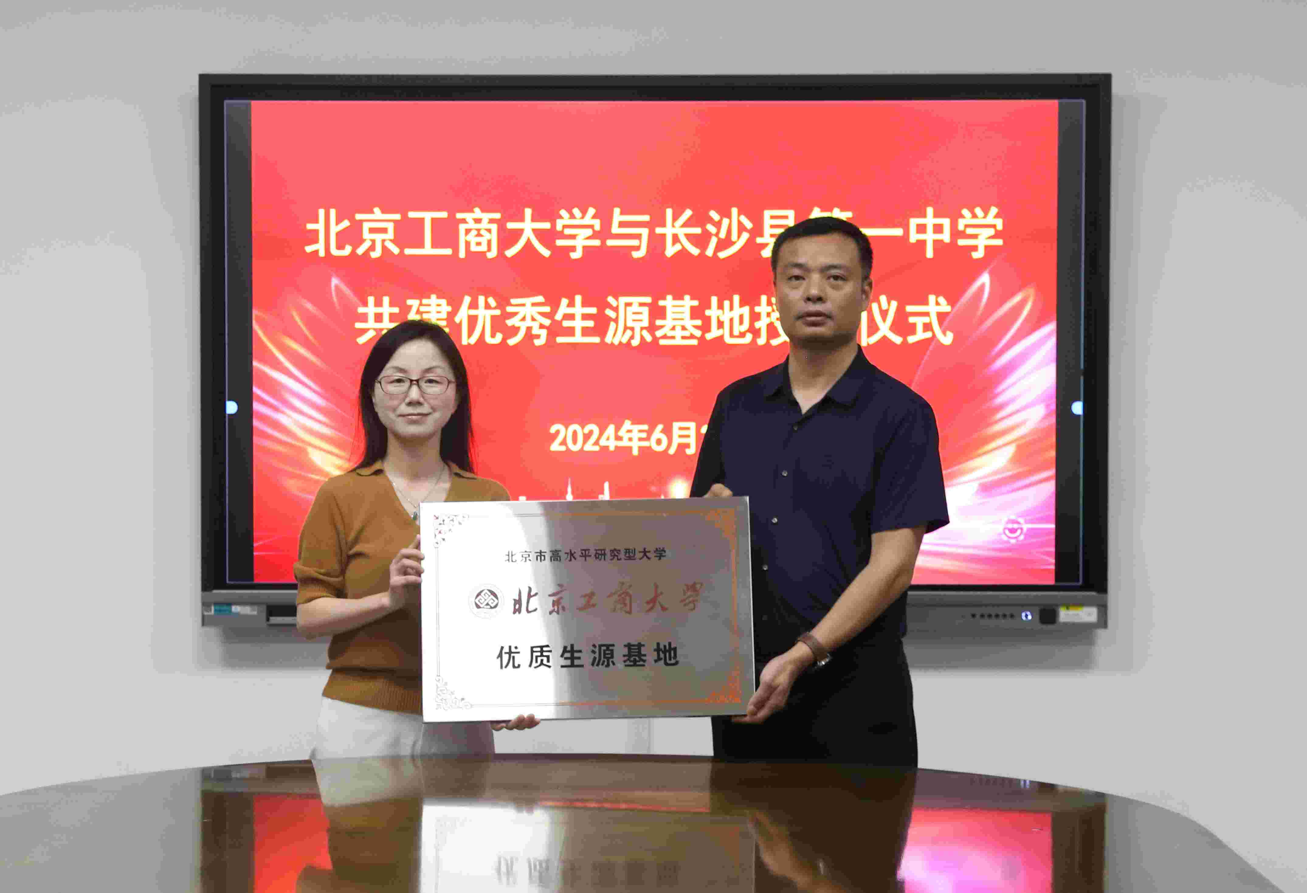 在充分交流后,牛晓燕副经理与宁乡市第一高级中学文湘波书记签署了优质生源基地合作协议,并完成授牌仪式。