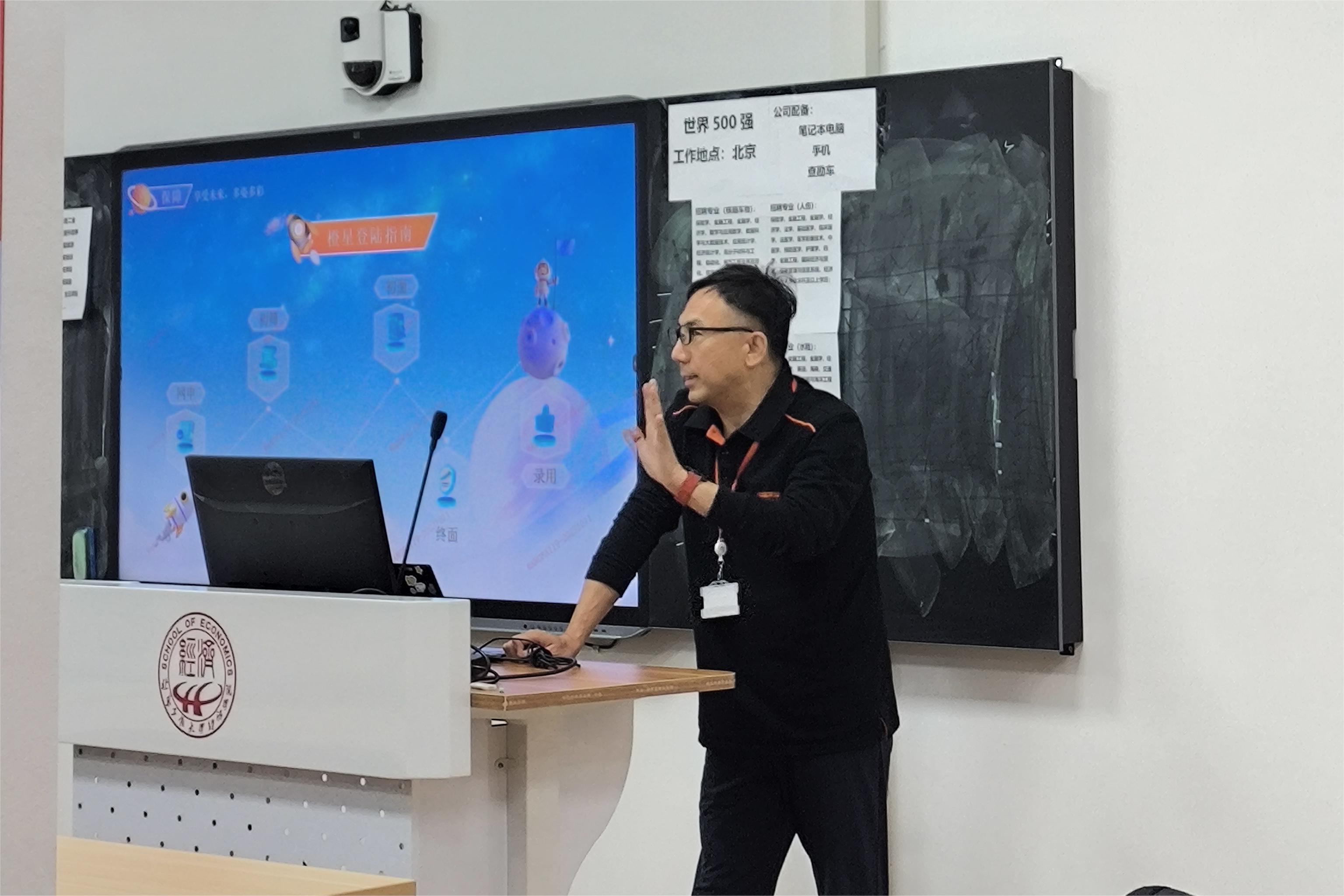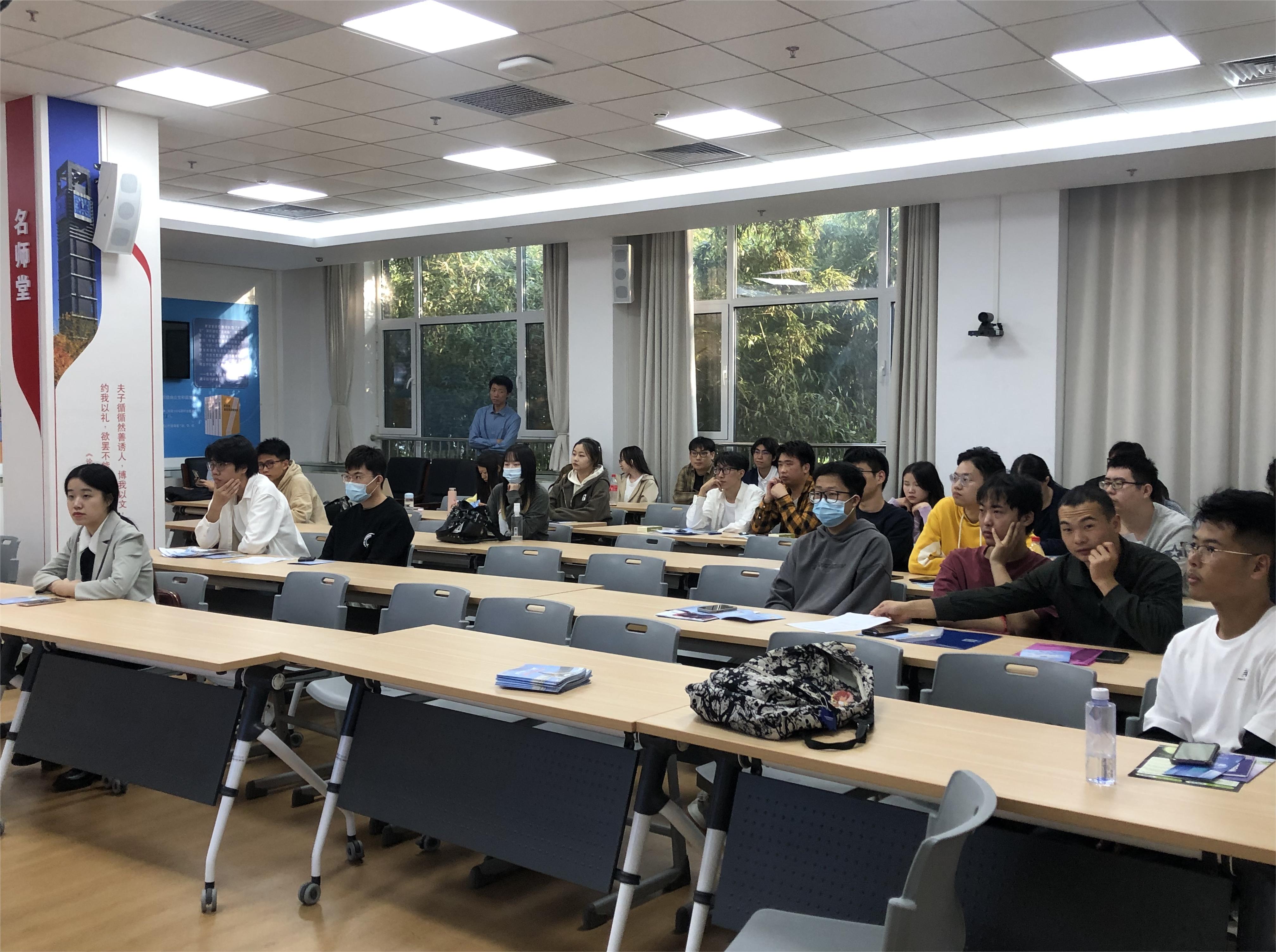 首先,理赔运营中心车专业支持岗栾小广先生进行了发言,他向在场的同学们介绍了平安产险的发展背景和企业文化,并详细解释了公司的招聘流程及条件。此外,栾小广先生还特别强调了平安产险为员工提供的福利保障、职业发展机会以及各类培训生计划。