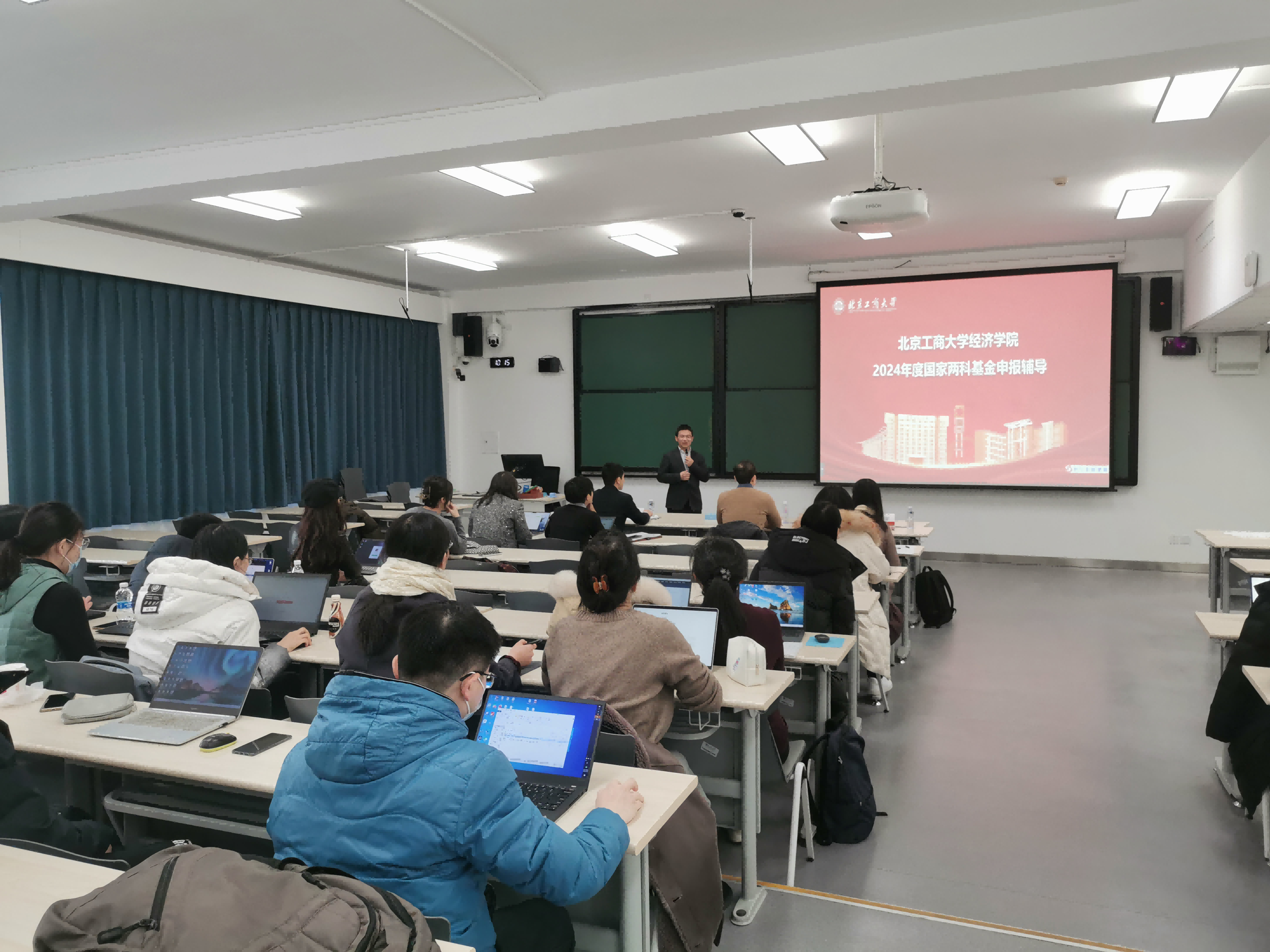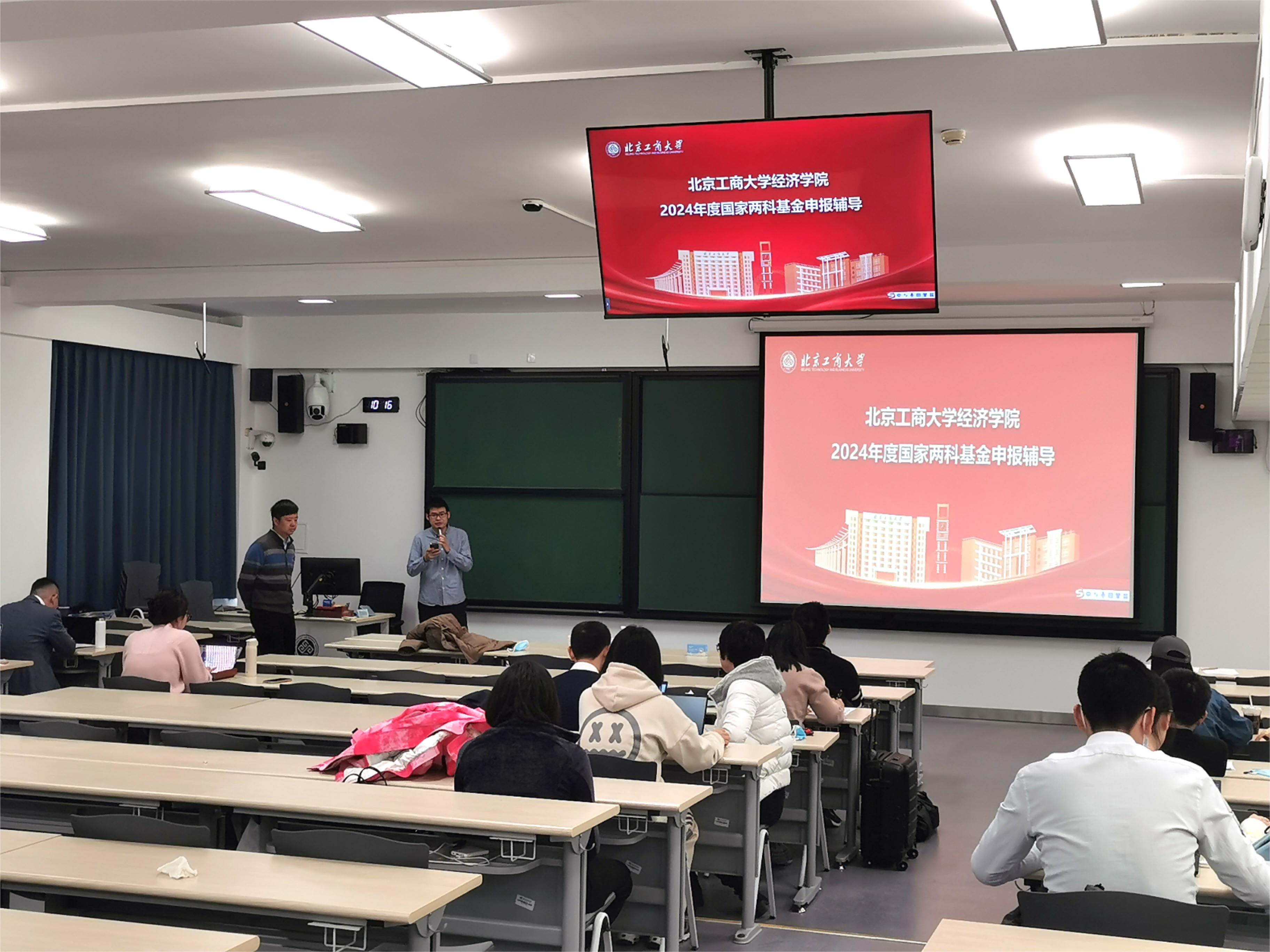 会议邀请国家“万人计划”教学名师、享受国务院特殊津贴专家中国人民大学方福前教授,国家“万人计划”领军人才、对外经贸大学教务处处长毛捷教授,以及中国人民大学方意教授、北京理工大学郝宇教授、中央财经大学俞剑教授、中央财经大学杨龙见教授等校外专家莅临指导。会议邀请的校内专家有:国家级高层次人才倪国华教授、国家级高层次人才詹新宇教授、北京市长城学者张正平教授、孟昌教授、陈真玲教授,以及科研院人文社科处副处长岳鹏鹏副教授、北京市教师队伍建设支持计划优秀青年人才李梦雨副教授、王爱萍副教授、崔怡副教授和苗珊副教授。公司人才工作办公室主任于明哲副教授,yl23455永利副经理牛晓燕副教授、关晶副教授,以及计划申报2024年度国家两科基金项目的70余名教师参加培训会。会议由yl23455永利执行经理詹新宇教授、副经理许敬轩副教授主持。