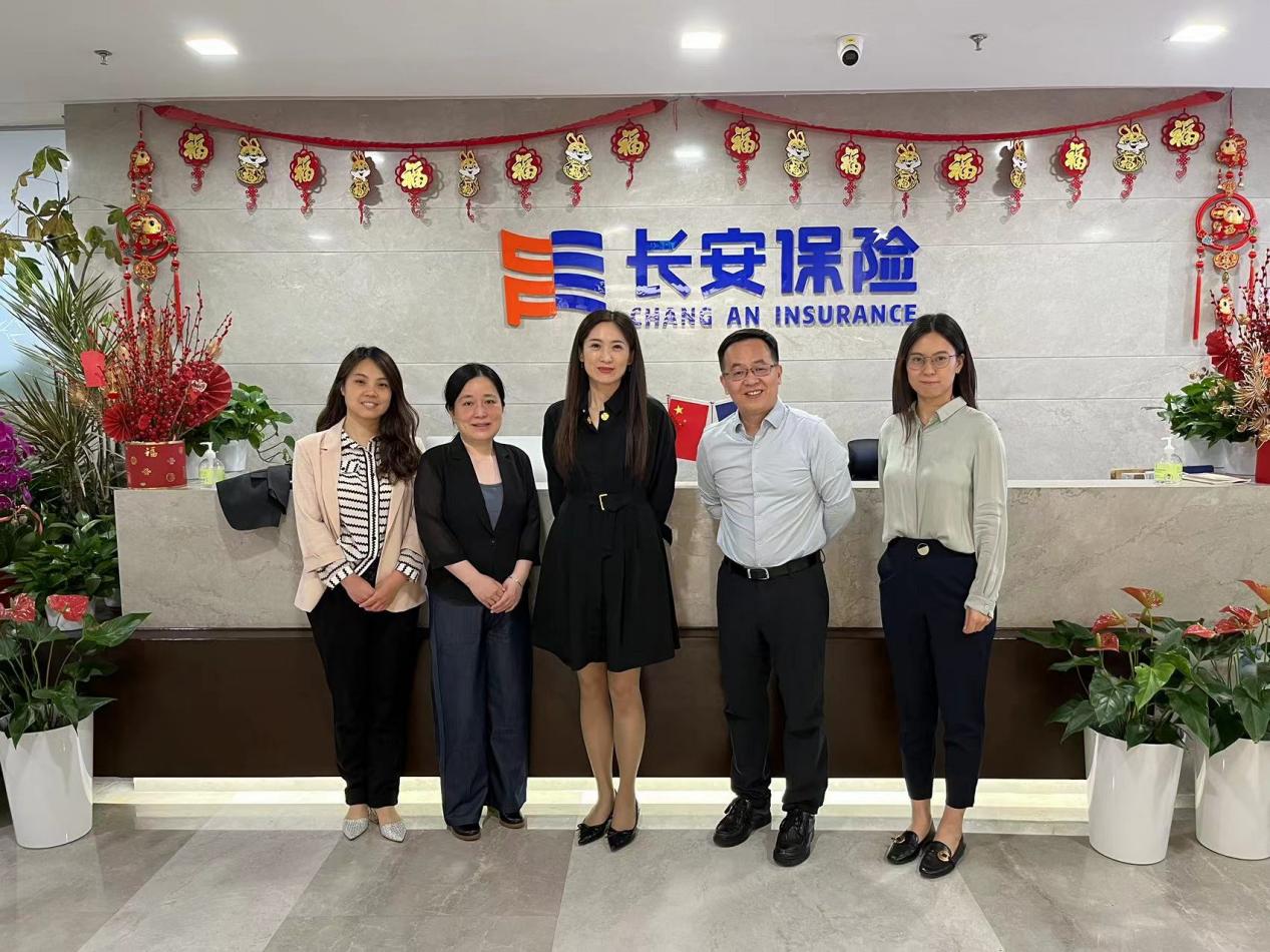 2023年5月17日,风险管理与保险学系系主任徐徐带领本系教师董捷、和文佳前往长安责任保险股份有限公司开展访企拓岗活动。中关村协同创新基金合伙人、高远厚德投资董事长、中融人寿独董周沛,长安责任保险公司副董事长兼首席投资官陈勇,长安责任保险公司财务总监兼长安保险销售公司董事长樊小芹参与此次交流活动。