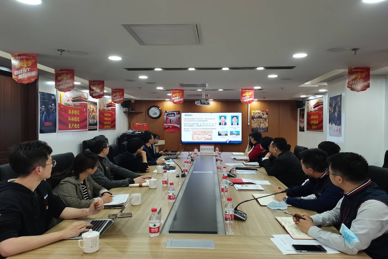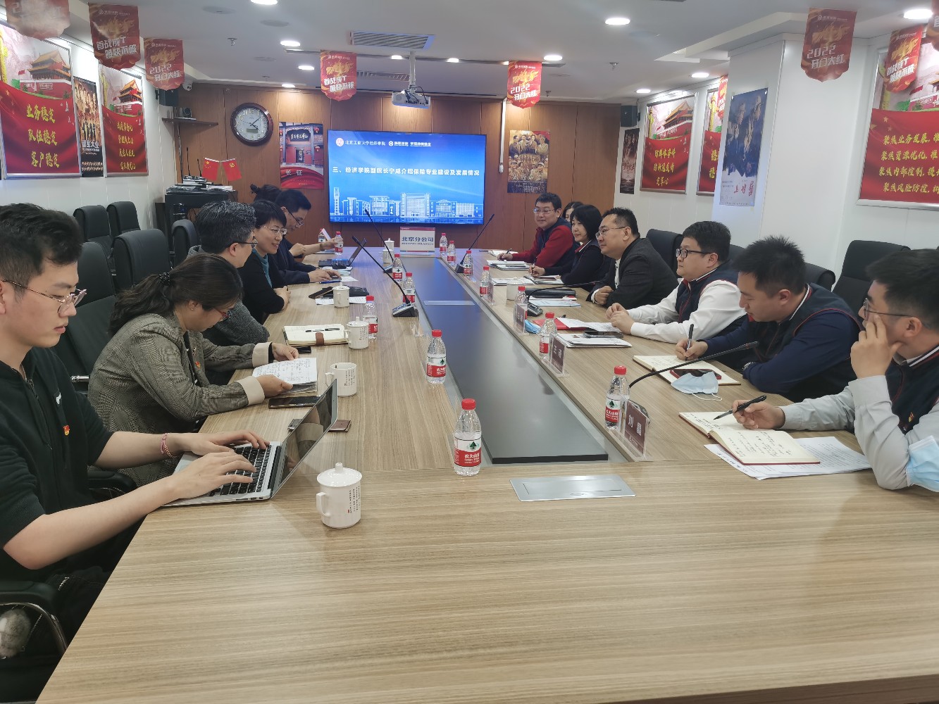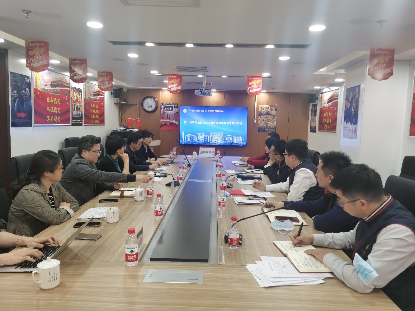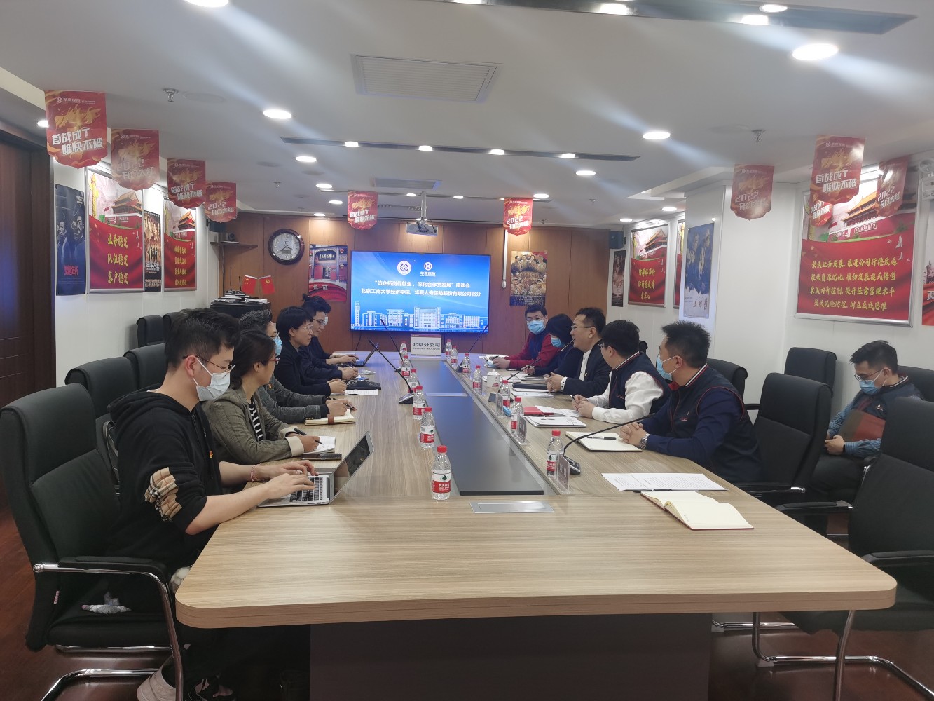 为贯彻落实党中央、国务院以及北京市关于高校毕业生就业工作的决策部署,了解用人单位需求,帮助员工更充分高质量就业,4月13日,公司党委书记吕素香、经理倪国华、副经理宁威、副书记李艳春、教师代表一行人前往华夏人寿保险股份有限公司北京分公司开展访企拓展促就业工作。华夏人寿保险股份有限公司北京分公司党总支书记、总经理王永等人陪同。