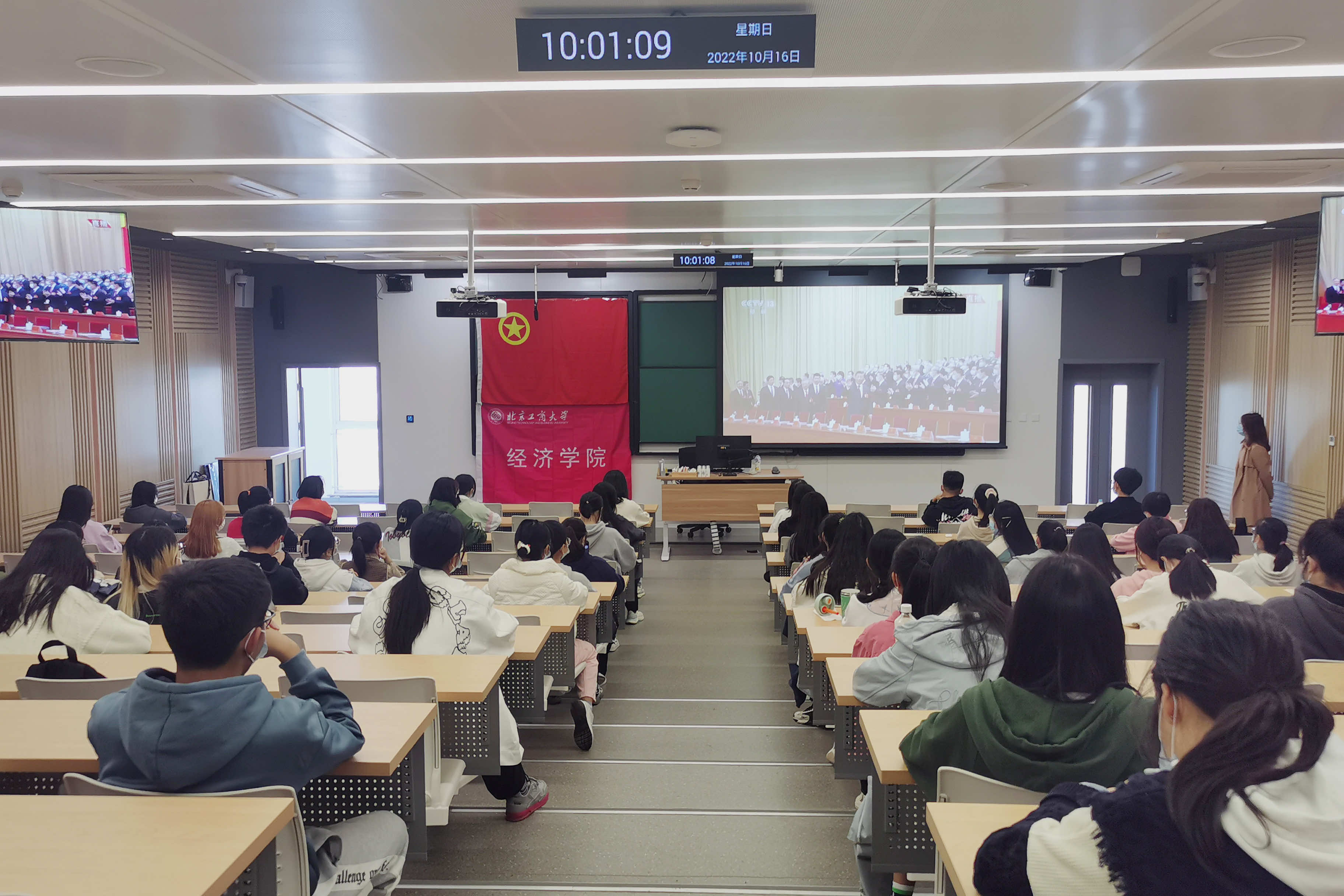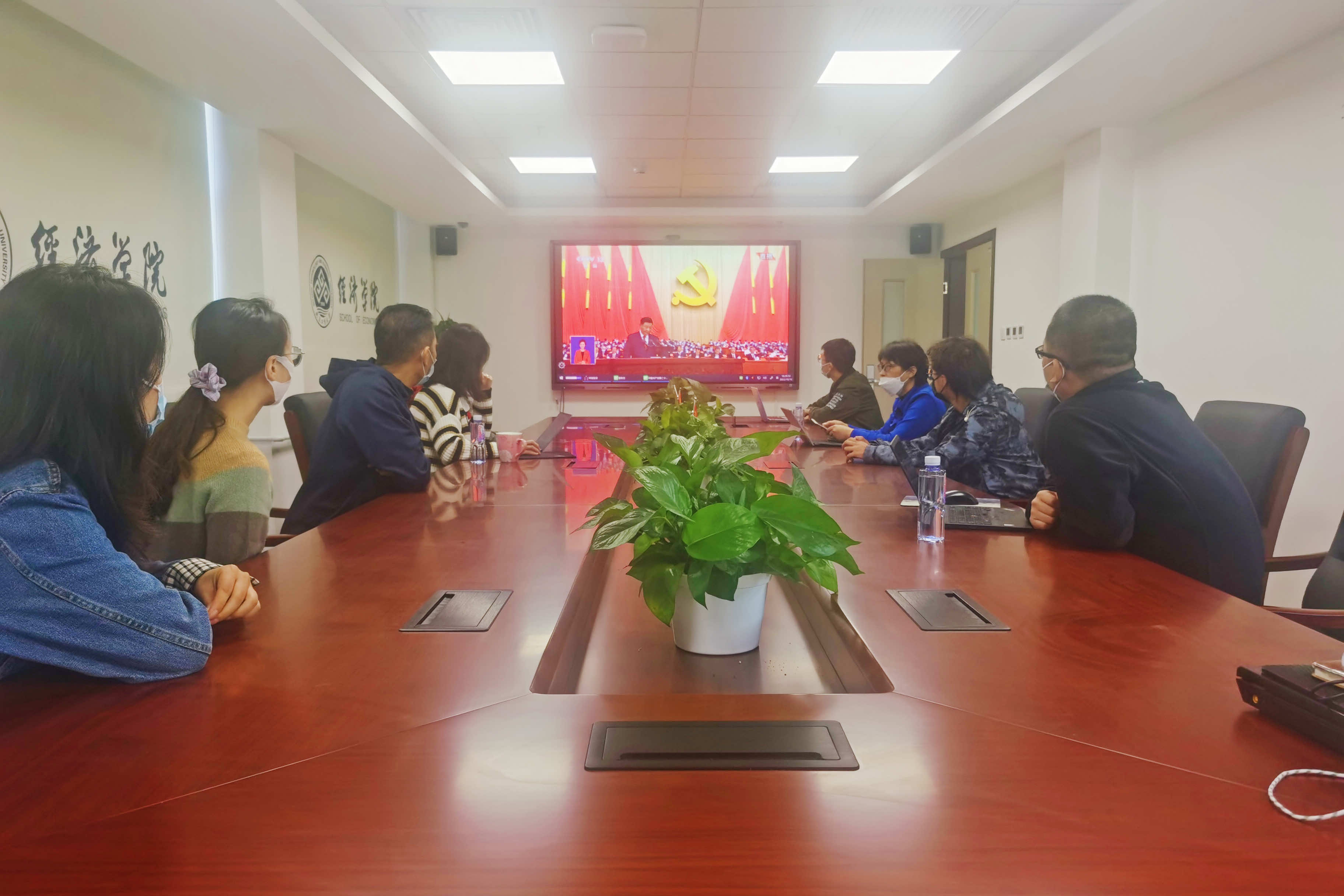 开幕式开始前,yl23455永利师生均到达了公司所设各分会场,并按照疫情防控要求佩戴口罩落座,共同收看大会的实况转播。在崭新的经院大楼中,公司教师与员工党员、团学干部们聚精会神地聆听习近平总书记代表第十九届中央委员会向党的二十大所作报告,认真笔记,为报告精彩之处热烈鼓掌。