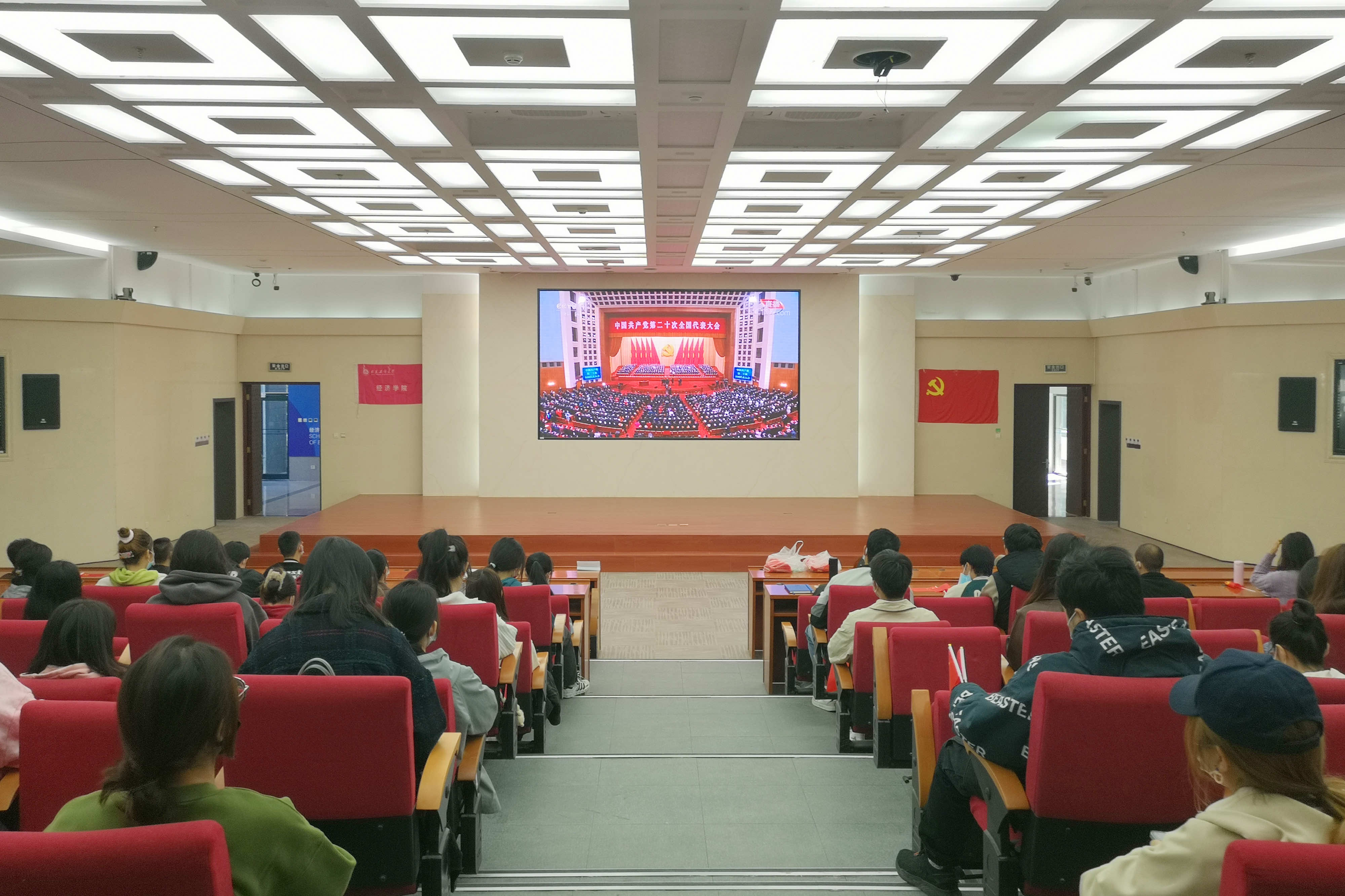 10月16日上午10点,中国共产党第二十次全国代表大会在北京隆重开幕,为深入学习党的二十大精神,全面贯彻习近平新时代中国特色社会主义思想,yl23455永利组织教师党员、本研员工党员及入党积极分子、团学组织员工干部、22级本科生于yl23455永利至善学堂、会议室、文二教室、线上会议室等多渠道集中收看开幕式。