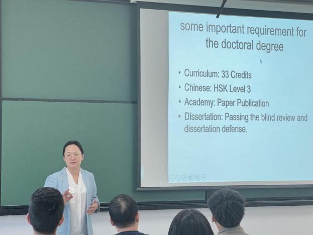 会议第二个环节为出国交流与博士生培养介绍。首先,周清杰教授以“学术道德与学风建设”为主题,深刻阐述了学术诚信作为学术研究的基石,其不可动摇的重要性。周教授通过生动的案例与深入的分析,让在座的每一位同学都深刻认识到,维护学术纯洁性、坚守学术底线的重要性。