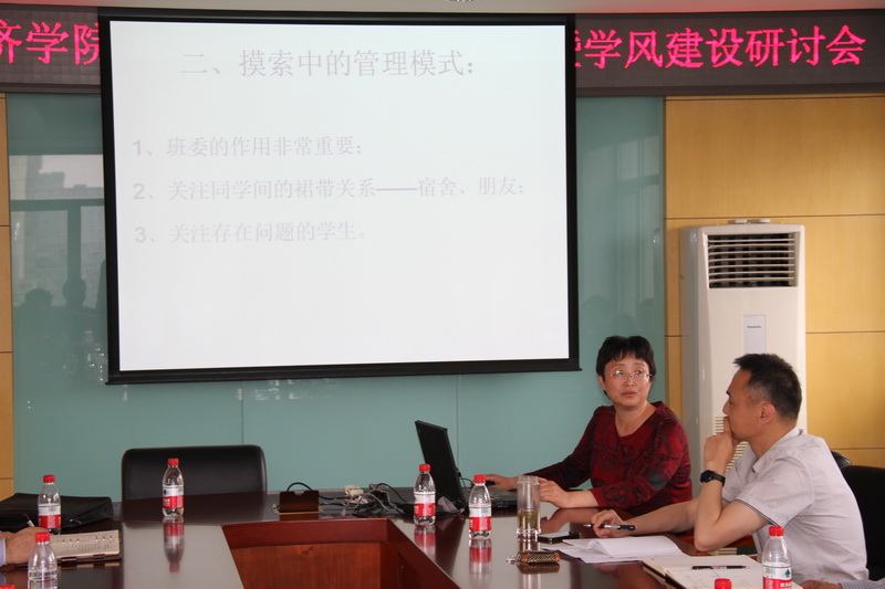 班主任谢雪燕、戚晓红和潘忠老师,分享了对金融工程131、金融152和国贸141三个班级的管理经验。她们从现代老员工的“心理年龄、集体意识、个性意识以及家庭、社会和公司影响等方面特点入手,交流班级管理工作的体会,主要是深入了解每个员工的情况,重点关注存在问题的员工;帮助员工做好学业规划,明确学习目标;因材施教,根据员工不同特点,制订个性化的培养计划;加强与辅导员的交流,及时了解班级情况;重视班干部的培养,促进班级学风工作的落实等等。