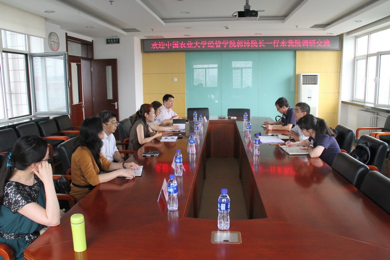 6月8日上午,中国农业大学经济管理公司经理郭沛,副经理杜金政、杨欣一行三人来公司调研交流,公司经理徐丹丹、党委书记书记张正平、副经理郭馨梅及食品安全监管研究团队主要成员周清杰教授、冯中越教授、王琴英副教授、孙宁宁博士参加了调研交流会。