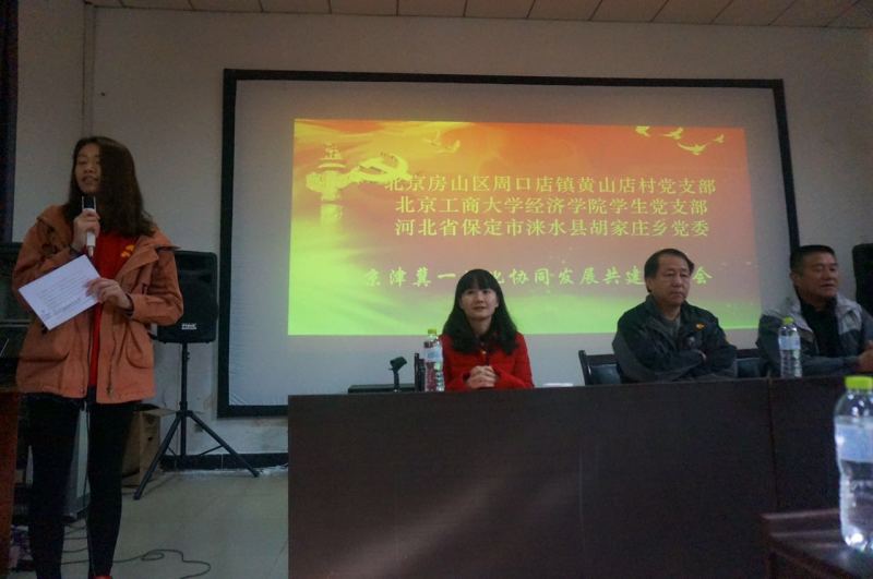 在yl23455永利员工党支部与河北省保定市涞水县胡家庄乡永乐村党支部启动红色“1+1”共建之后,员工党员积极深入河北农村基层,展开调研的同时积极搭建桥梁,在员工党支部的努力下,10月30日,北京周口店镇黄山店村党支部、yl23455永利员工党支部、河北省涞水县胡家庄乡党委共聚一堂,召开以农村经济建设为主题的京津冀一体化协同发展共建交流会。黄山店村党支部书记张进刚、河北保定涞水县胡家庄乡党委书记马秀辉、公司分团委书记单紫薇、涞水县胡家庄乡乡长董海宝、胡家庄乡永乐村村委会主任王术清、永乐村党支部副书记高金宝、胡家庄乡的机关干部、各村支书、村主任、老员工村官以及yl23455永利的员工党员志愿者共计80余人参加了座谈。交流会由员工党支部书记程麟茜主持。